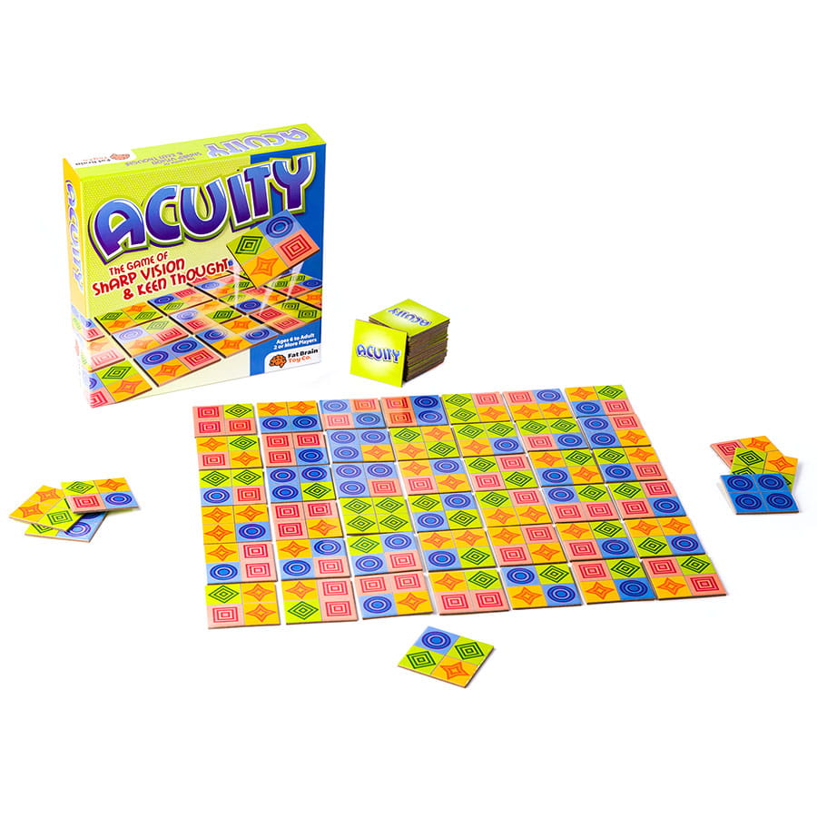 Acuity to gra polegająca na wyszukiwaniu identycznych wzorów na kwadratowych płytkach. Część z nich rozkłada się na stole w układzie 6 x 6 płytek, przy czym na każdej płytce widnieją 4 znaki graficzne (obrazki). Do dyspozycji graczy pozostają 34 karty tego samego typu co wcześniej rozłożone. Zadaniem graczy jest znalezienie identycznego układu czterech obrazków na swojej karcie i na stole - niestety - nie znajdziemy po prostu takiej samej płytki, gdyż każda z nich jest unikalna, a zatem takiego samego wzoru szukamy na 3 sposoby:
