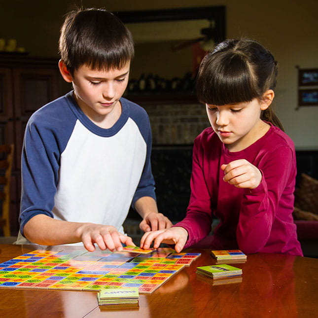 W zestawie 70 wysokiej jakości płytek do gry w Acuity - spostrzegawczość od Fat Brain Toys.