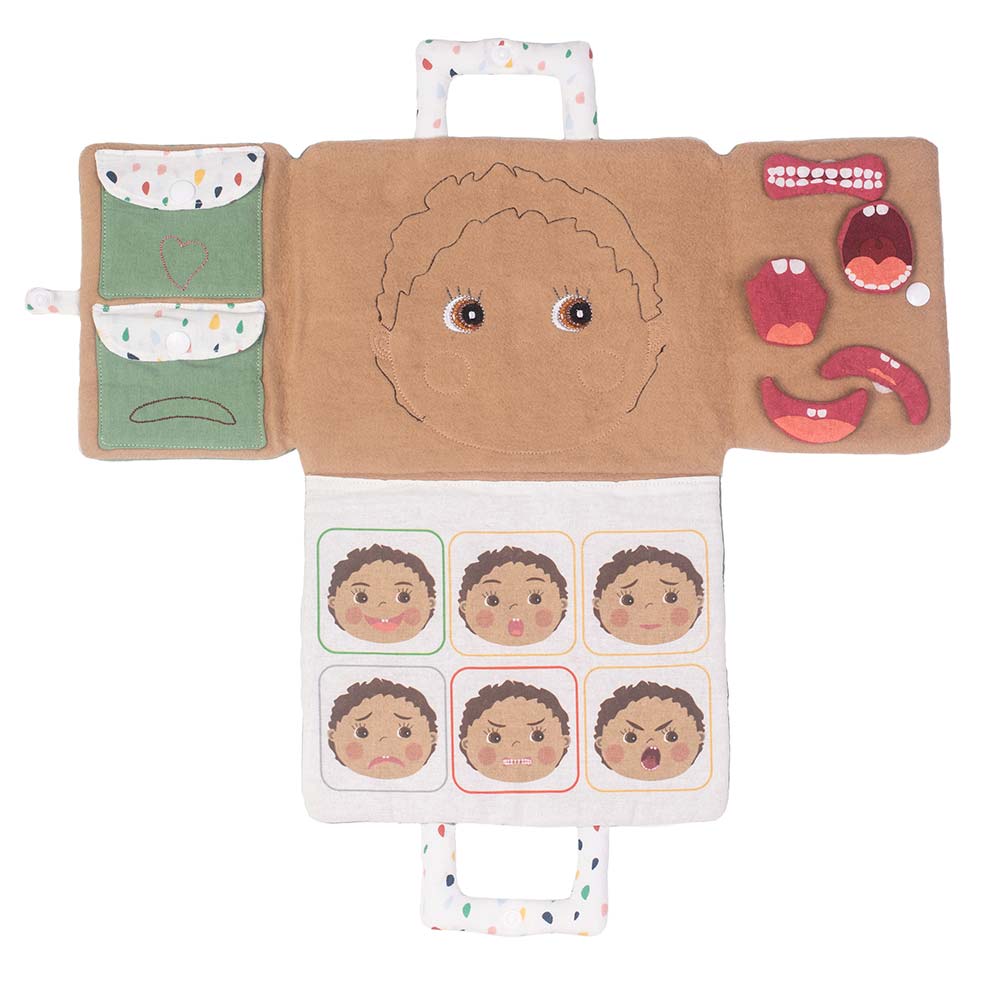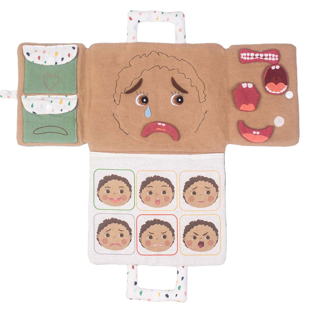 Ten specjalnie zaprojektowany zestaw do zabawy uczy Twoje dziecko o różnych emocjach i sposobach ich wyrażania poprzez odgrywanie ról z lalką Baby. Zestaw zawiera pluszową walizeczkę, w której znajdują się akcesoria pozwalające na zmianę wyrazu twarzy lalki w zależności od jej samopoczucia, które są mocowane na rzepy, lub do stworzenia własnej, okazującej emocje buźki wewnątrz walizeczki.