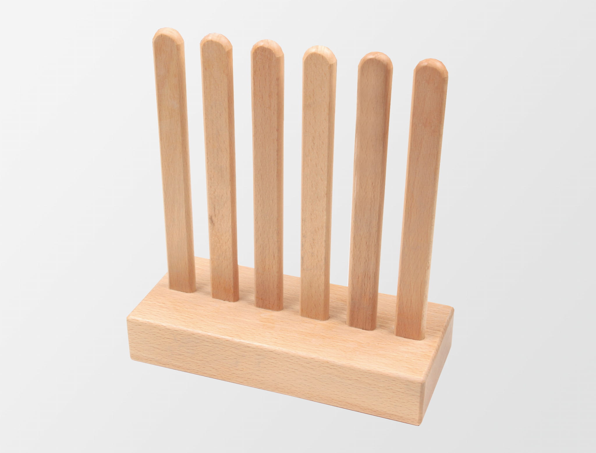 Kolorowe rolki dziecko umieszcza w podstawce według gotowych wzorów lub własnego pomysłu. Rolki wsuwane są swobodnie od góry w szczeliny grzebienia. Tworzą one obrazek warstwami, rzędami od dołu do góry.