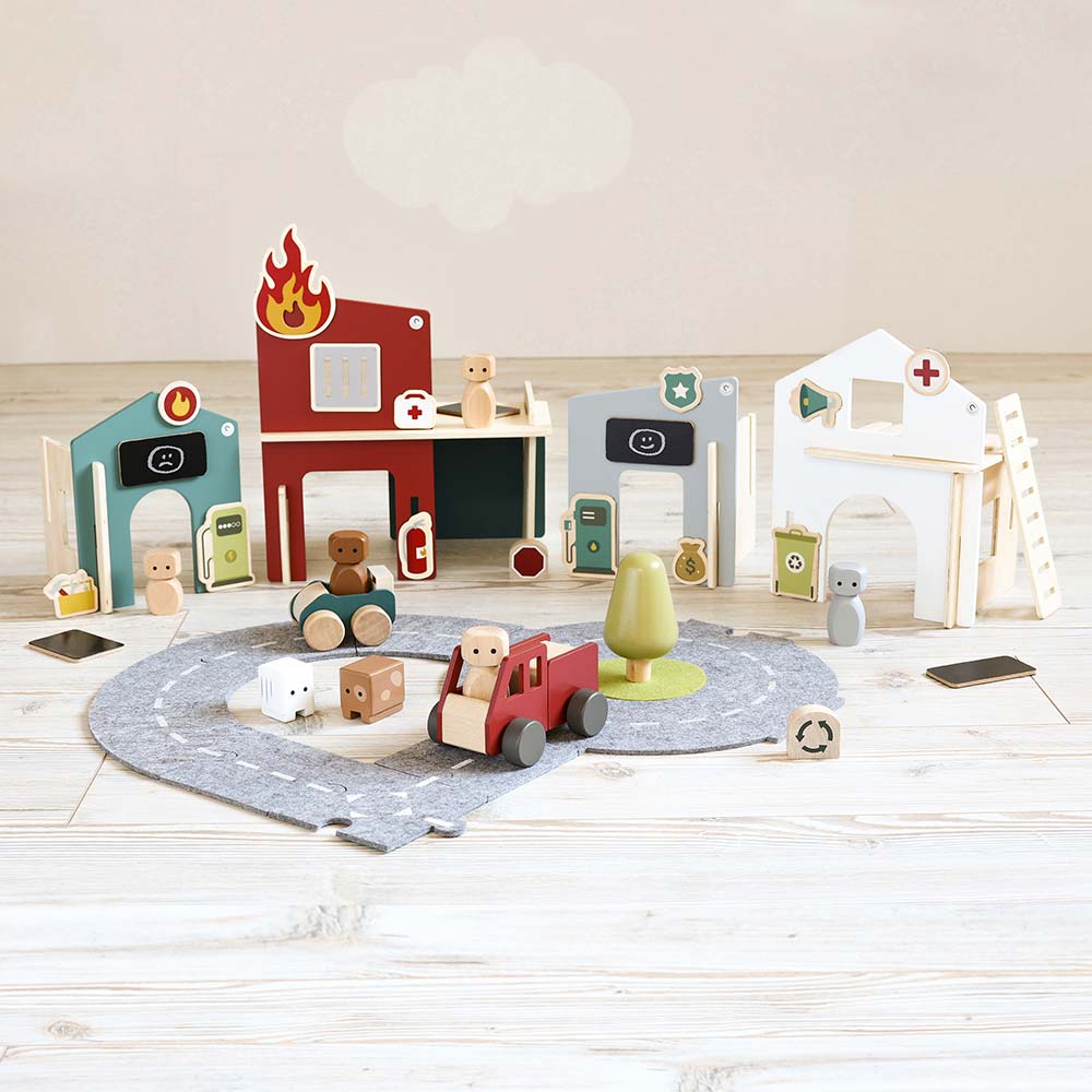 Kreatywny świat zabaw z różnymi tematami, w którym dzieci mogą budować swoje własne miasto. Opracowany we współpracy z pedagogami i dziećmi, aby stworzyć pełene zabawy i nauki środowisko zabawy.