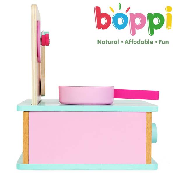gotowanie, zabawa w dom. Poręczna i wygodna drewniana kuchnia od BOPPI to duża, stołowa, słodka kuchenka z akcesoriami do gotowania.