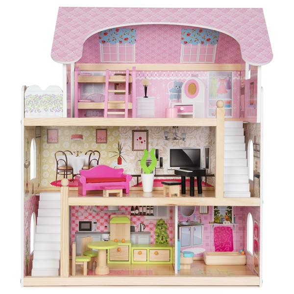 Duży, 3- piętrowy drewniany dom od BOPPI to mnóstwo kreatywnej zabawy, odtwarzanie ról, urządzanie pokoi i dekorowanie. Domek wykonany jest z drewna z dbałością o detale. Wnętrze ma winylowy nadruk. Misie i lalki do wysokości 20 cm z dużą wygodną będą spędzały tam czas:)
