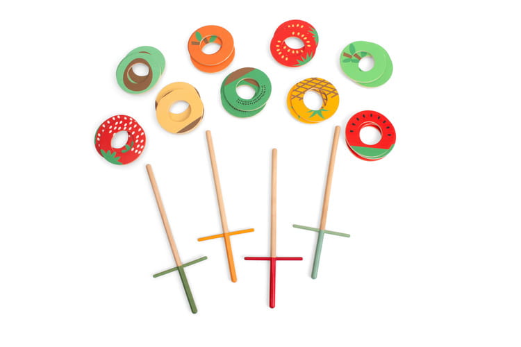 Popularna gra zręcznościowa polegająca na łapaniu na drewniane pałeczki owocowych dysków. Drewniane pałeczki oraz dyski gwarantują, że zabawka przetrwa niejeden sezon.