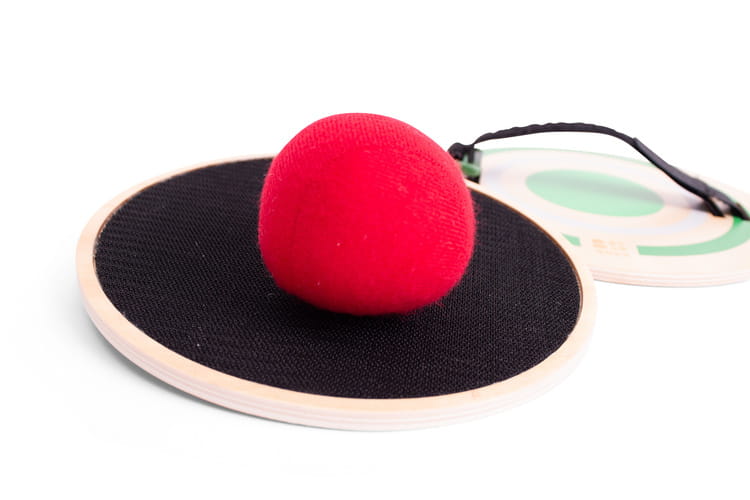 Drewniane paletki z rzepem w komplecie z piłką to zabawa dla wszystkich lubiących spędzać czas aktywnie .