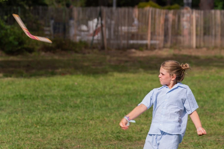 Bumerang powinien polecieć, zrobić łuk i wrócić. Zostań na miejscu i cały czas go obserwuj.