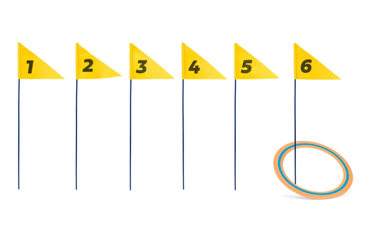 Trafić wszystkie sześć masztów z chorągiewkami we właściwej kolejności rzucając dyskiem. Wygrywa gracz, który jako pierwszy ukończy całą trasę!