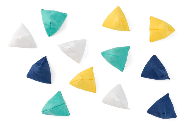 - Gracze na zmianę rzucają jeden woreczek do trójkąta.
