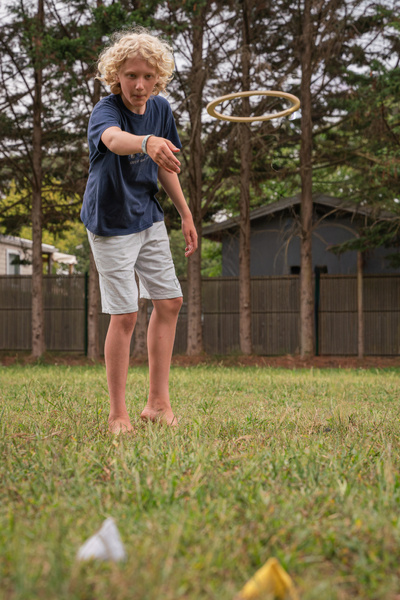 - Zacznij od rzucania obręczy zamiast ich układania.