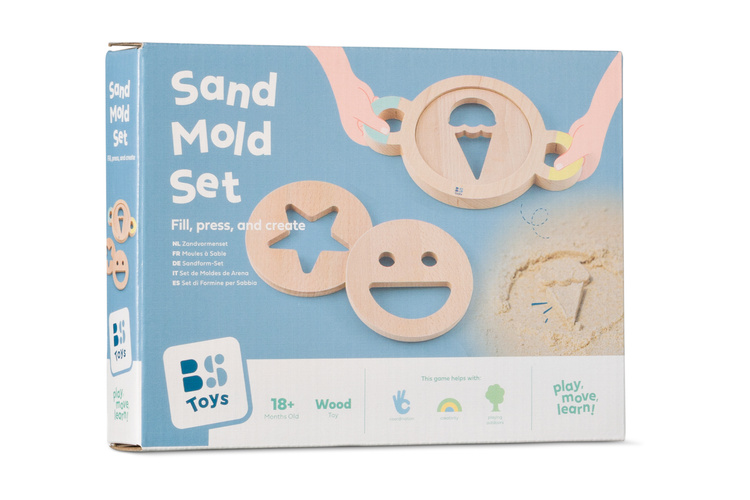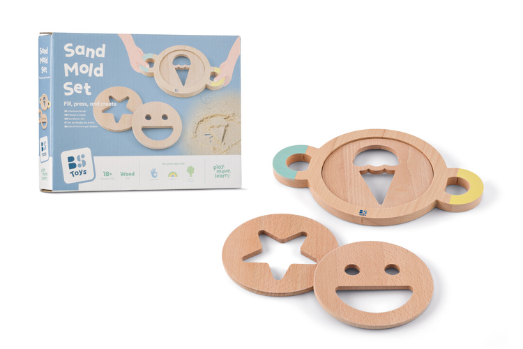 Zestaw drewnianych foremek do piasku to świetna zabawa.