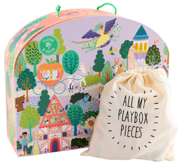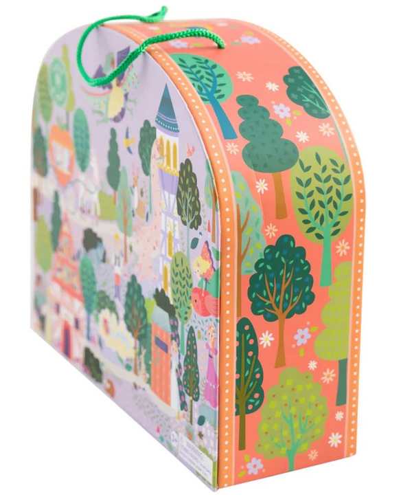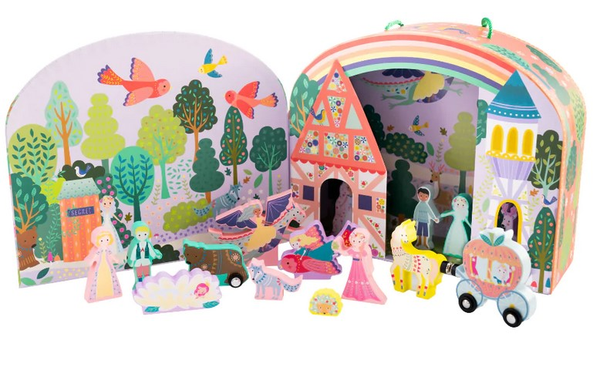 Zapraszamy do Zaczarowanego Lasu, gdzie świetna zabawa czeka na każdego! Ten zestaw składa się z 15 fantastycznych, dwustronnych drewnianych figurek oraz rozkładanej planszy do zabawy, przedstawiającej bajkowy las, kolorową chatkę i wieżę pod piękną tęczą. W tym uroczym świecie znajdziesz księżniczki, zwierzątka, kuca i karocę z dyni na kółkach, przyjaznego smoka i wiele innych bajkowych postaci. Ciesz się godzinami zabawy zarówno samodzielnie, jak i w towarzystwie przyjaciół i rodzeństwa. Po zakończonej zabawie włóż drewniane figurki i pozostałe elementy do poręcznego woreczka ze sznurkiem, zamknij pudełko, a następnie skorzystaj z wygodnego uchwytu do przenoszenia, aby zabrać zestaw na kolejną przygodę.