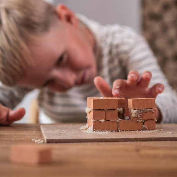 Zostań budowniczym i wykorzystaj zestaw ceramicznych elementów do stworzenia własnego domku lub innych budowli.