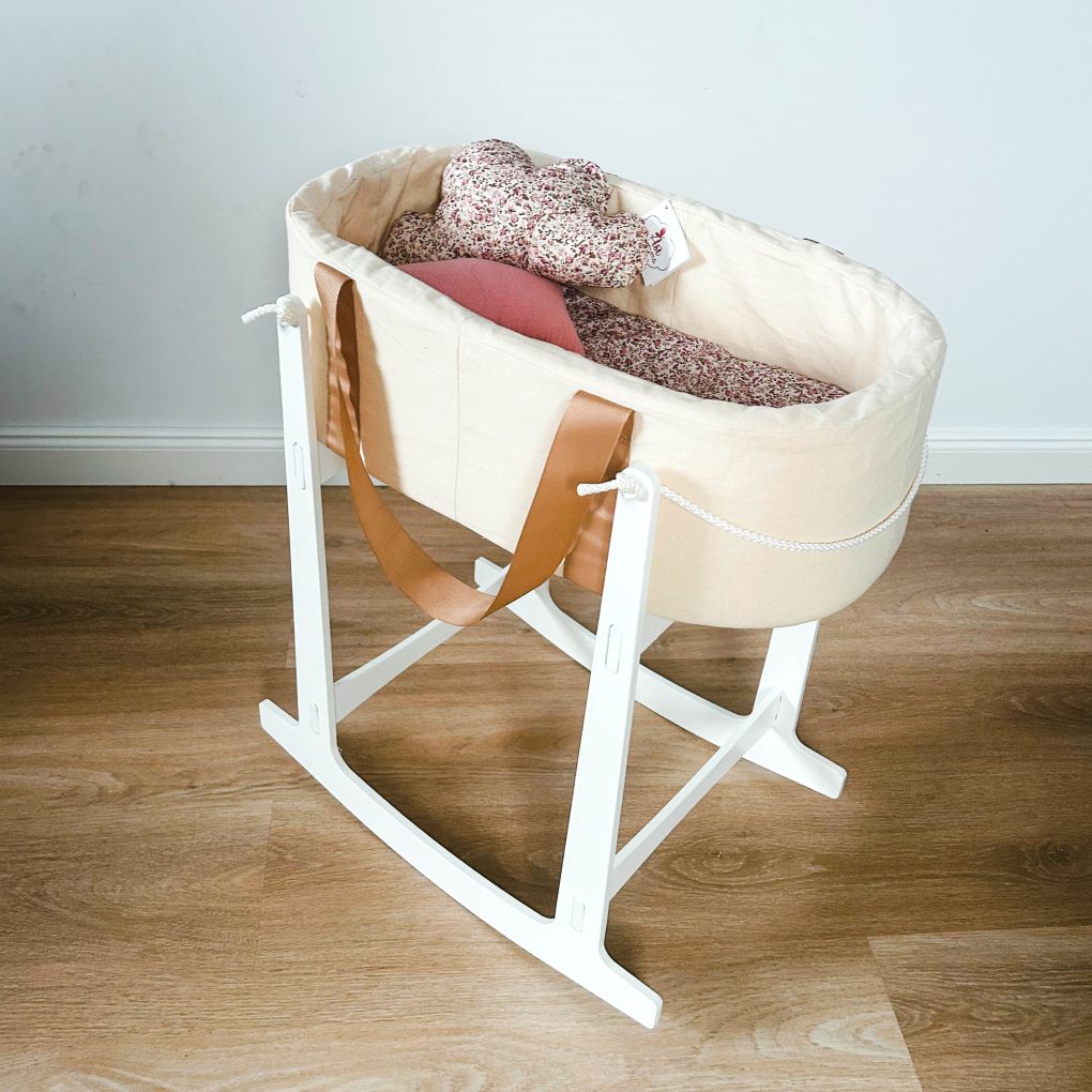 bujak z drewna malowanego na biało. Po umieszczeniu w nim nosidła lub gondoli,