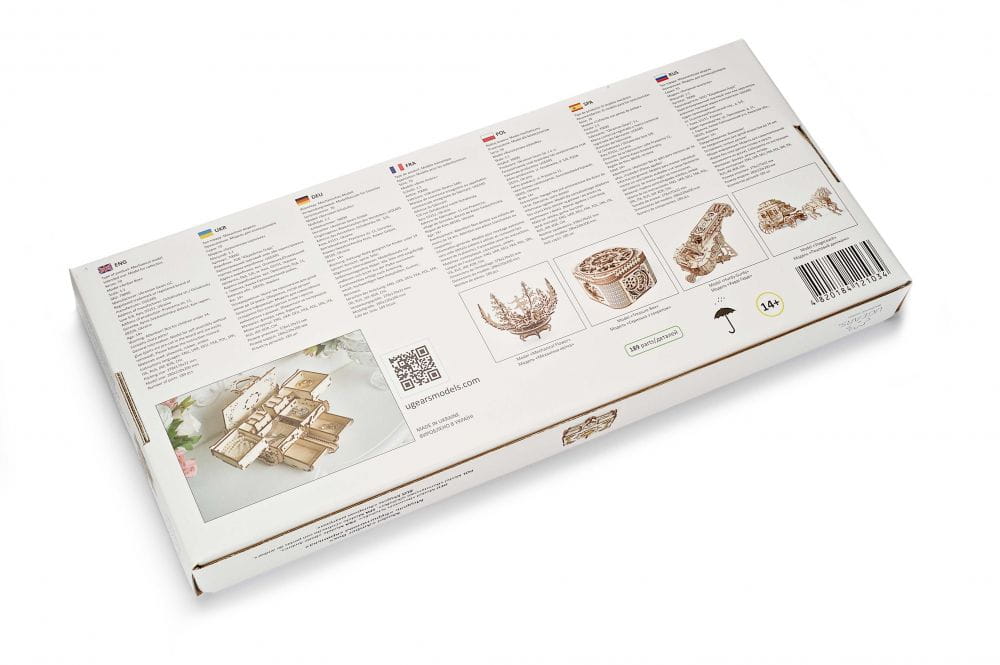 Chcesz, aby drewniany model miał praktyczne zastosowanie? W takim razie skrzyneczka Ugears to świetne rozwiązanie. Z jednej strony samo jej składanie z precyzyjnie, laserowo wyciętych elementów może być wspaniałą przygodą, a potem doskonale nada się do przechowywania mniej lub bardziej cennych drobiazgów. Sprezentuj ją bliskiej osobie, aby wiedziała, że nie szczędzisz czasu na przygotowanie upominku dla niej. Bursztynowe wieko nadaje mu szczególnie eleganckiego charakteru.