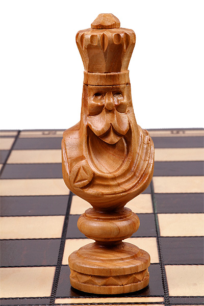 - król jest najwyższą figurą w zestawie i posiada wysokość aż 14,5 cm (standardowa wysokość profesjonalnych szachów turniejowych to ok 9 - 9,5 cm),