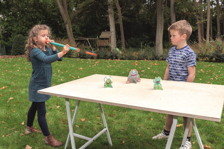 Gra polega na jak najbardziej precyzyjnym trafieniu lotkami w różniej wielkości cele. Do dmuchawki XL i 5 celów dołączono 3 lotki.