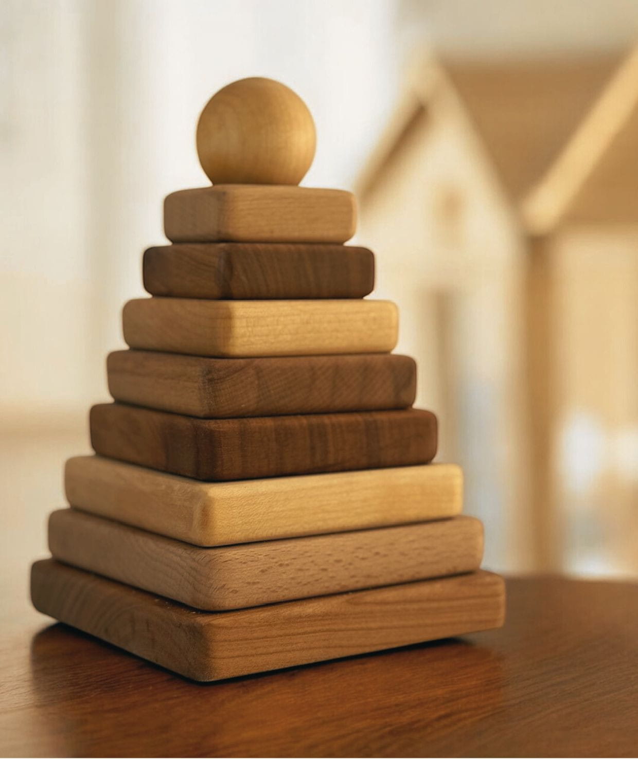 Drewniana Piramida Kwadratowa marki Wooden Story to klasyczna zabawka, zachwycająca prostotą, a jednocześnie pobudzająca kreatywność, oferując przy tym przyjemnie spędzony czas. Maluch musi kierować się spostrzegawczością i umiejętnością myślenia logicznego, aby ułożyć drewniane klocki, od największego do najmniejszego.