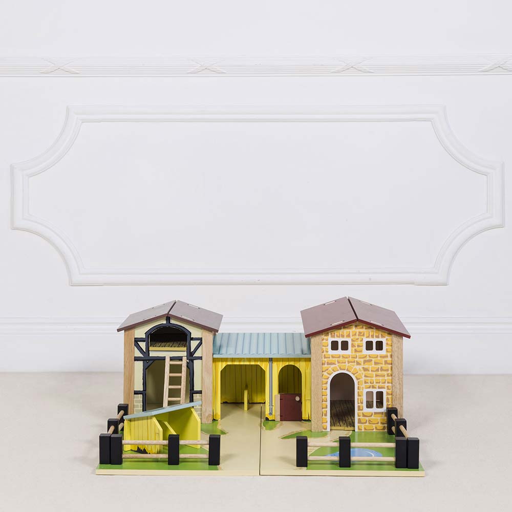 Klasyczna zabawka, przepięknie wykonana i pomalowana drewniana farma zawiera dużą stodołę ze strychem na siano, dojarnię, stajnię i chlewik. Zbudowana na szczegółowo zdobionej podstawie i wyposażona w ruchome ogrodzenie z płotków. Rozmiarem dostosowana do zwierzątek wiejskich marki Le Toy Van oraz kompatybilna z innymi figurkami, zwierzętami i postaciami sprzedawanymi osobno. Nie zawiera plastiku. Tak zaczyna się prawdziwa przygoda małego farmera!