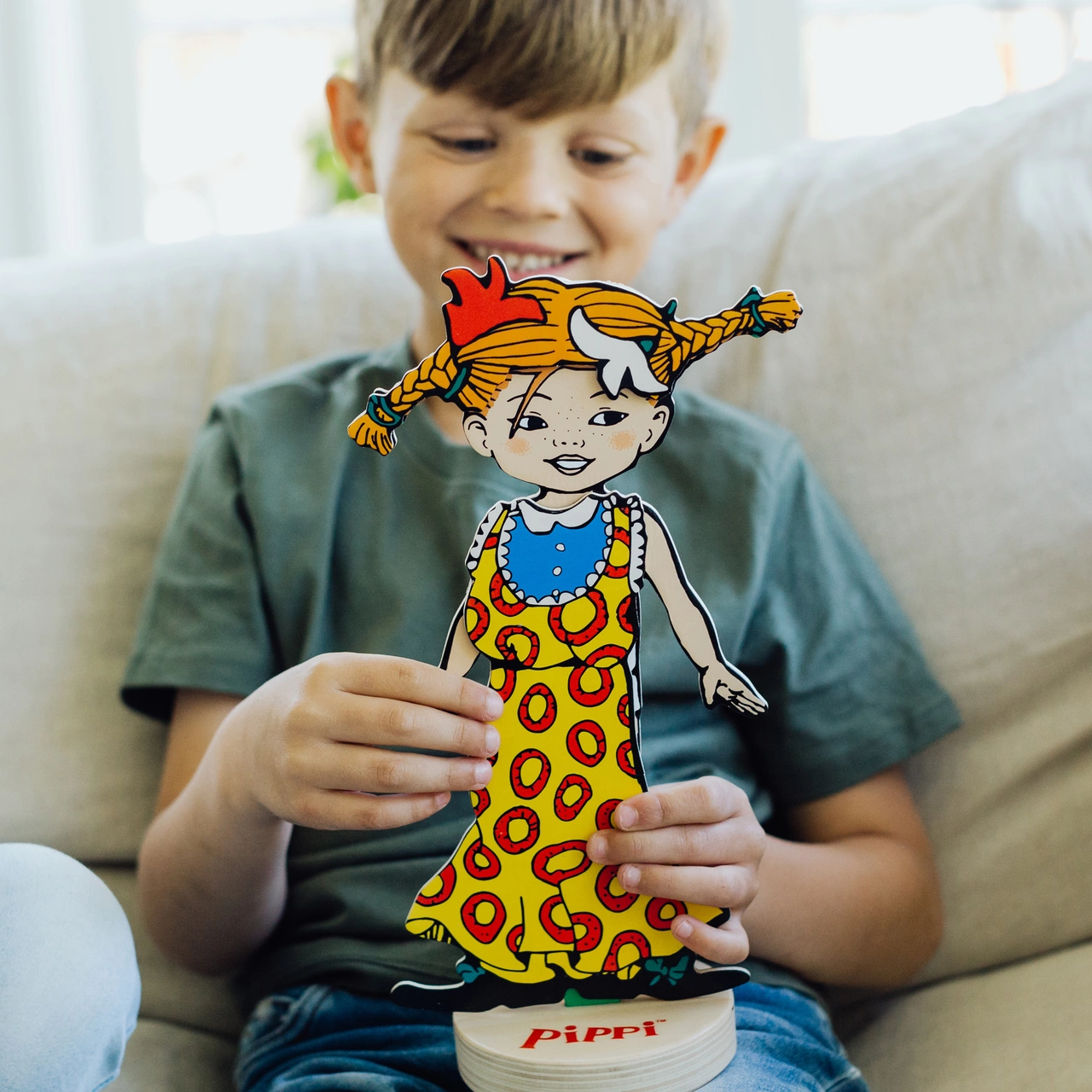 Ta wyjątkowo zabawna lalka do przebierania dla dzieci została zaprojektowana w Szwecji i starannie wykonana z drewna na podstawie oryginalnych ilustracji z książek o perypetiach Pippi Langstrumpf. Zaprasza dzieci do bardzo atrakcyjnej zabawy i zdobywania nowych doświadczeń w świecie, w którym wszystko jest możliwe.