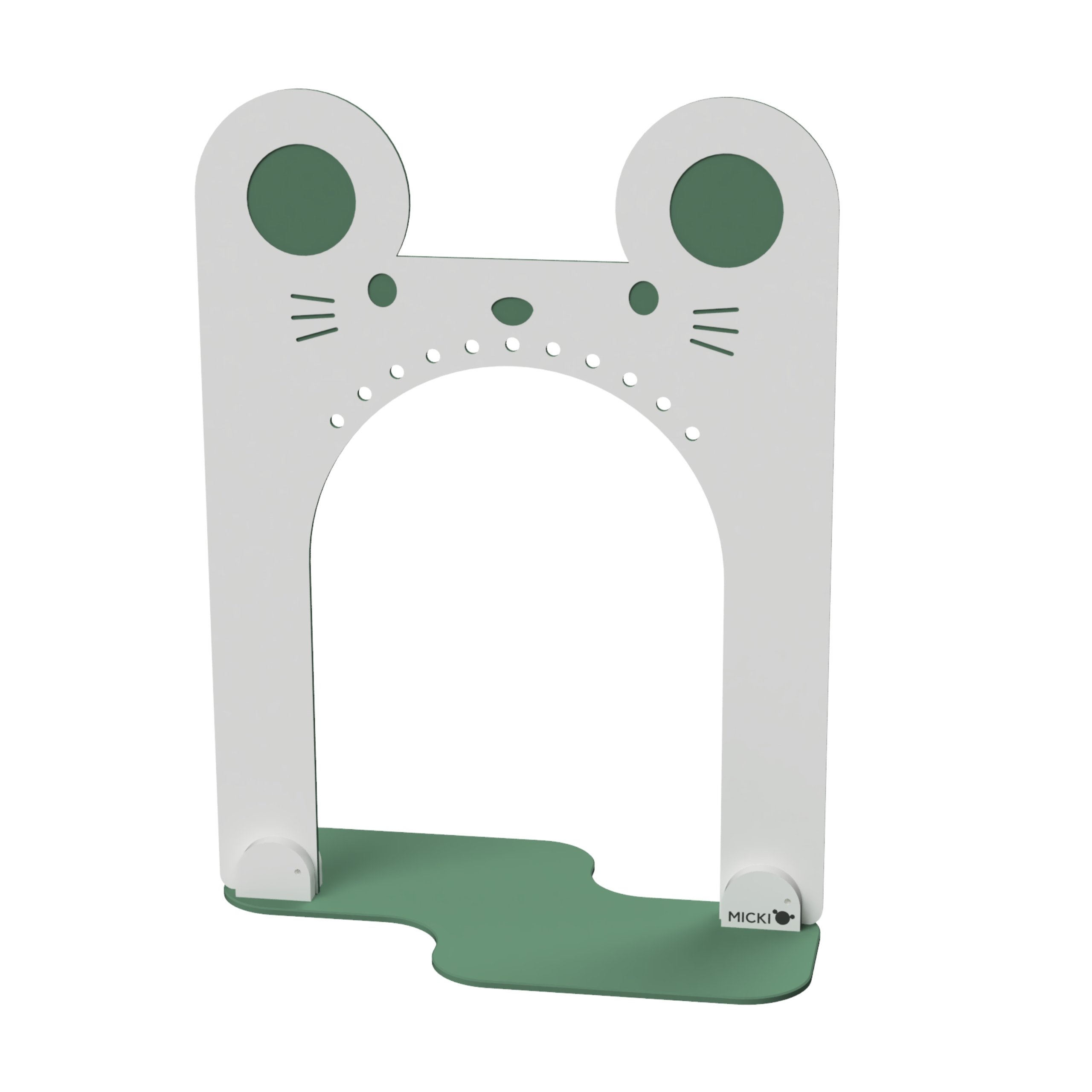 Edukacyjna tablica dla dzieci z wizerunkiem myszki oferuje otwartą przestrzeń w kształcie fantazyjnych drzwi z otworami na szczycie sklepienia, co pozwala dzieciom tworzyć własny świat zabawy i wieszać na nich różne przedmioty. Tablica stoi na stabilnej podstawie w kształcie ścieżki i jest fantastycznym narzędziem, które pobudza wyobraźnię oraz wspiera prawidłowy rozwój angażując różne zmysły najmłodszych. Tablicę można dowolnie zestawiać z innymi tablicami edukacyjnymi dostępnymi oddzielnie, aby tworzyć inspirującą przestrzeń do zabawy w dowolnym miejscu.