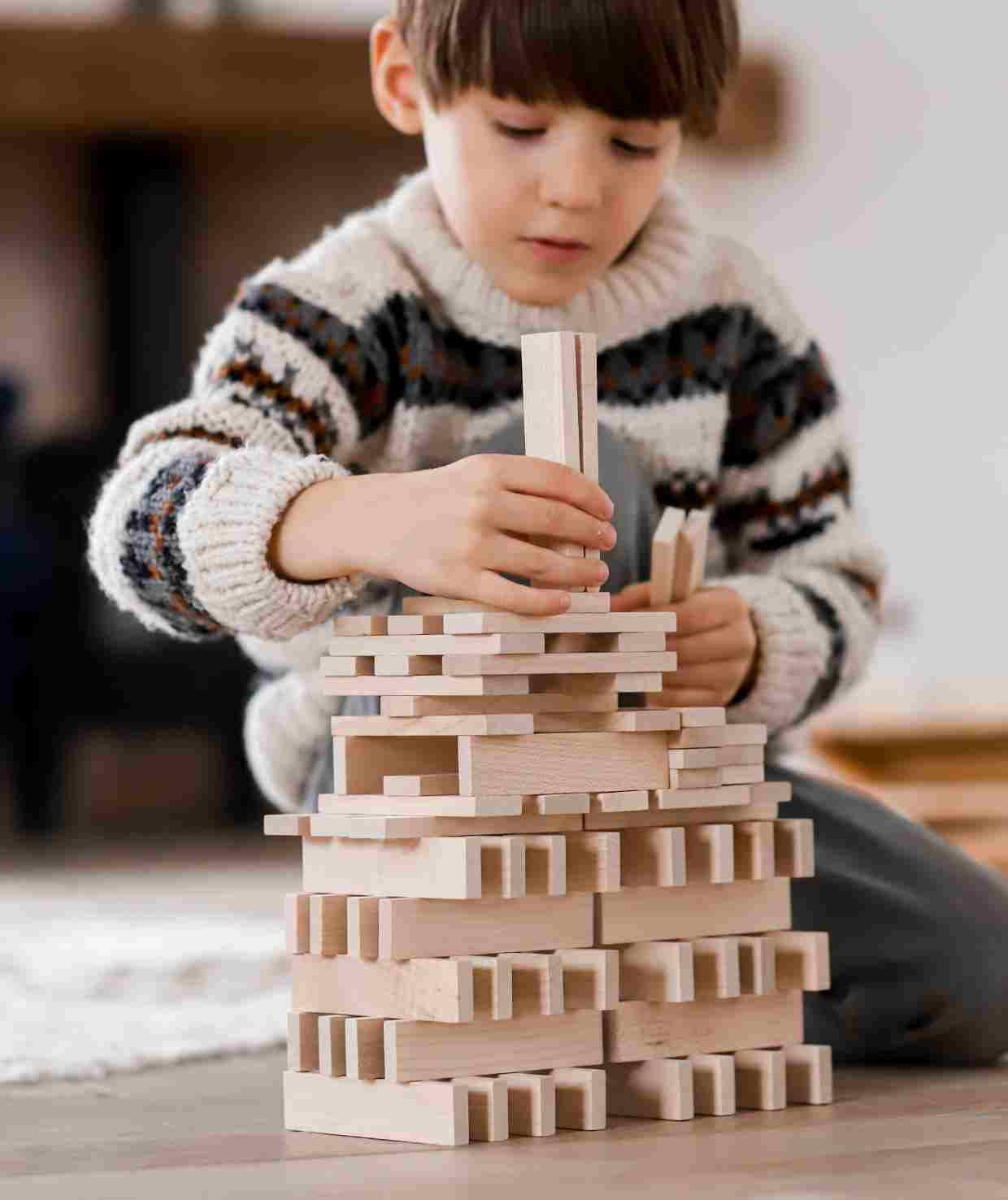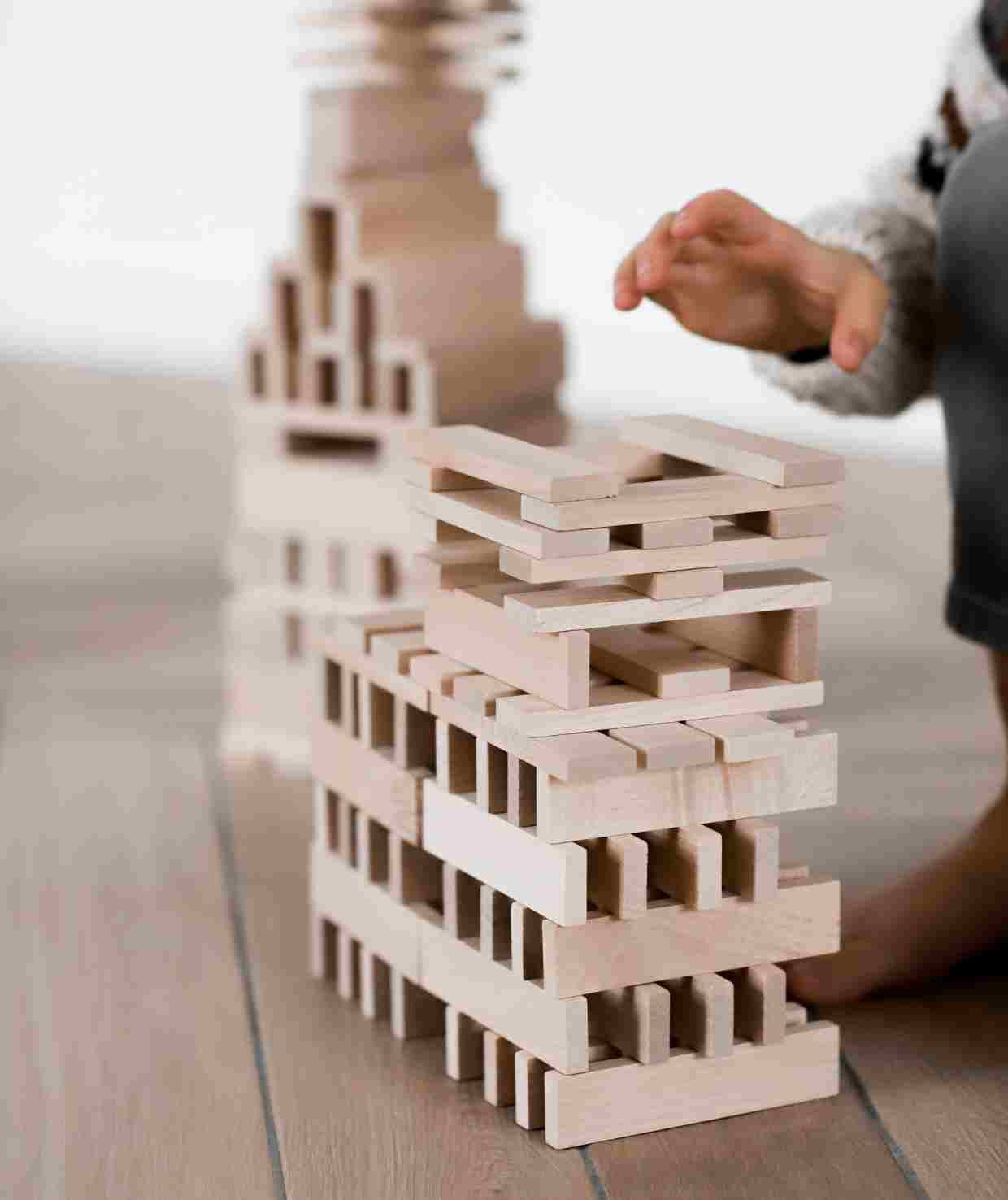 • 100 drewnianych klocków o gładkiej, przyjemnej w dotyku powierzchni