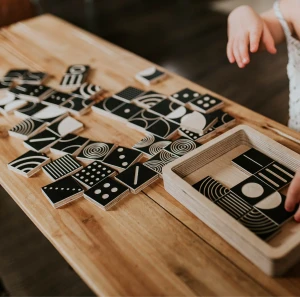 Drewniane Klocki kontrastowe + karty z kompozycjami Milin