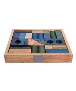 Drewniane Klocki w Skrzynce - Barwa Zimna, 30 Elementów