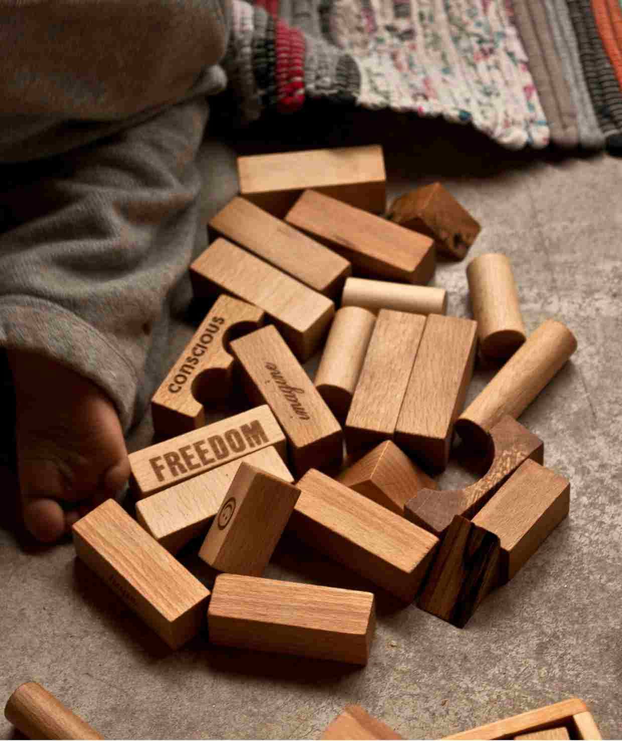 • 54 drewniane klocki o gładkiej, przyjemnej w dotyku powierzchni