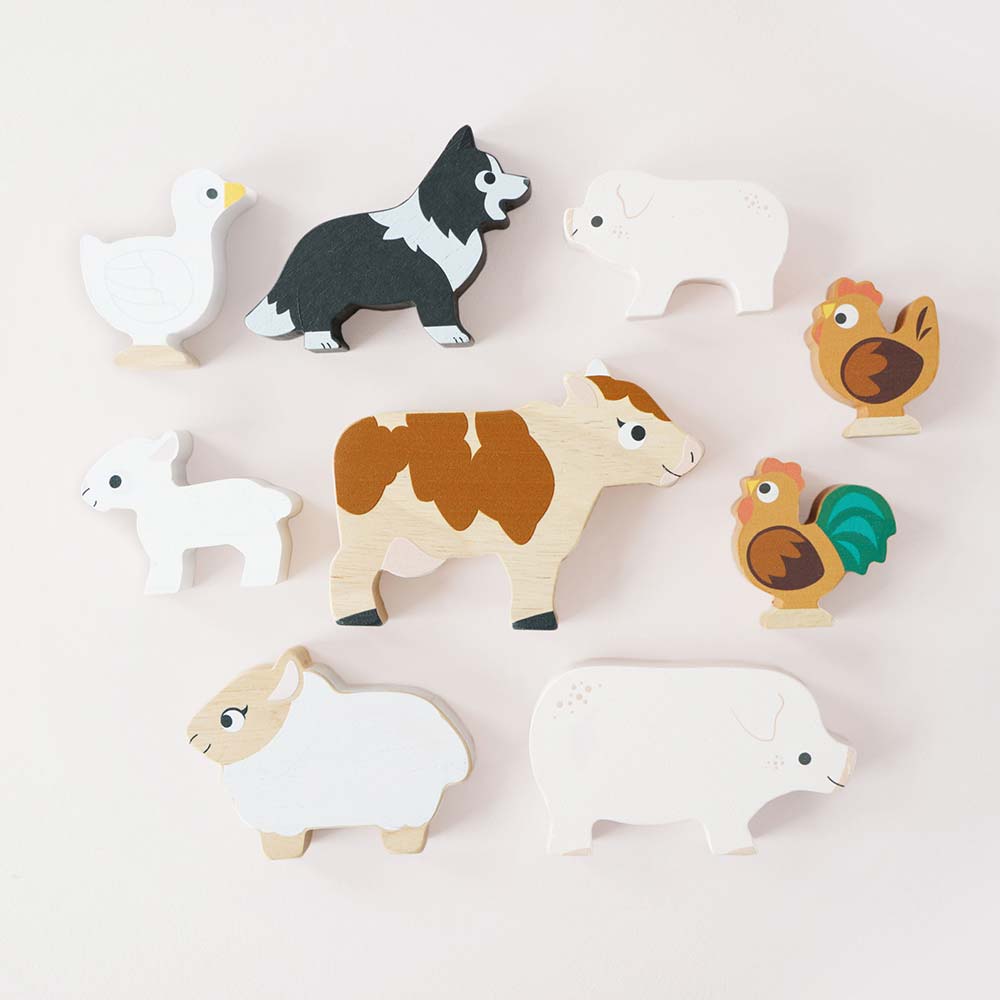 Drewniane figurki zwierzątka wiejskie, zabawka układanka, dzieci Le Toy Van