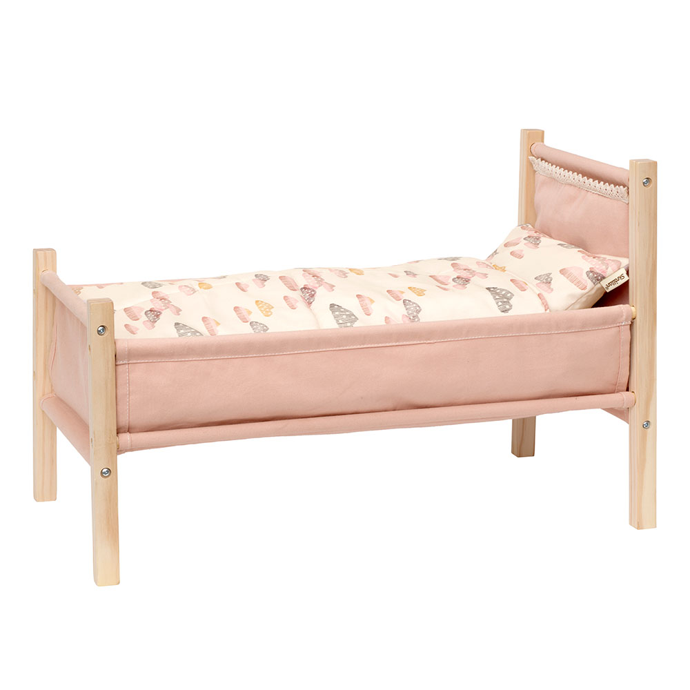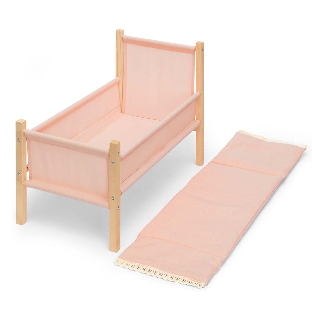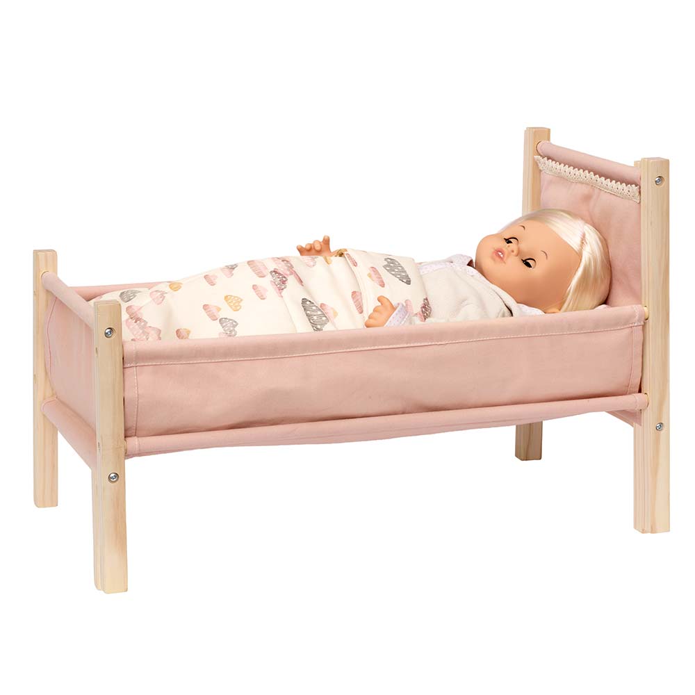 Drewniane łóżeczko dla lalek, zabawka dla dzieci, zabawa lalkami, Skrallan