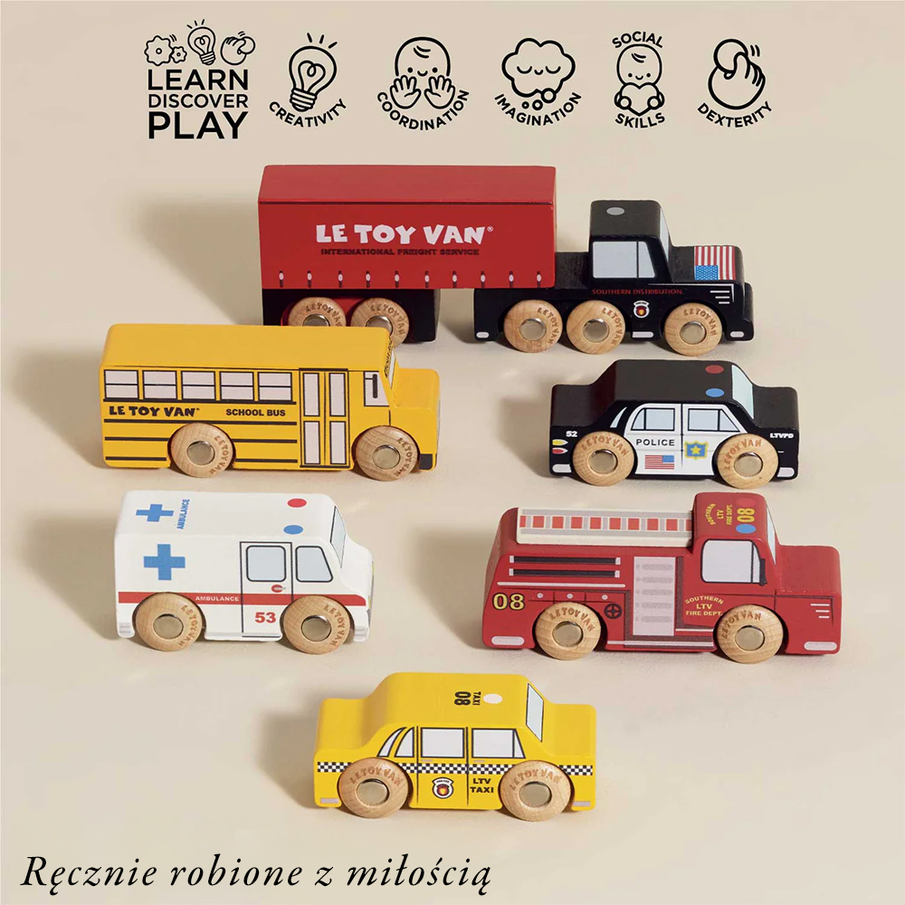 Drewniane samochody zestaw Nowy Jork, zabawka pojazdy dla dzieci Le Toy Van