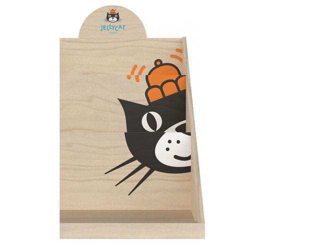 Ekspozytor wykonany z jasnego drewna, ozdobiony wymiennym logo Jellycat London: klasycznym i Jellycat Books. Doskonale wyeksponuje książeczki jak i pluszaki marki Jellycat.