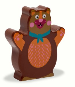Drewniany miś z dźwiękiem - grzechotka od szwajcarskiej firmy Oops.