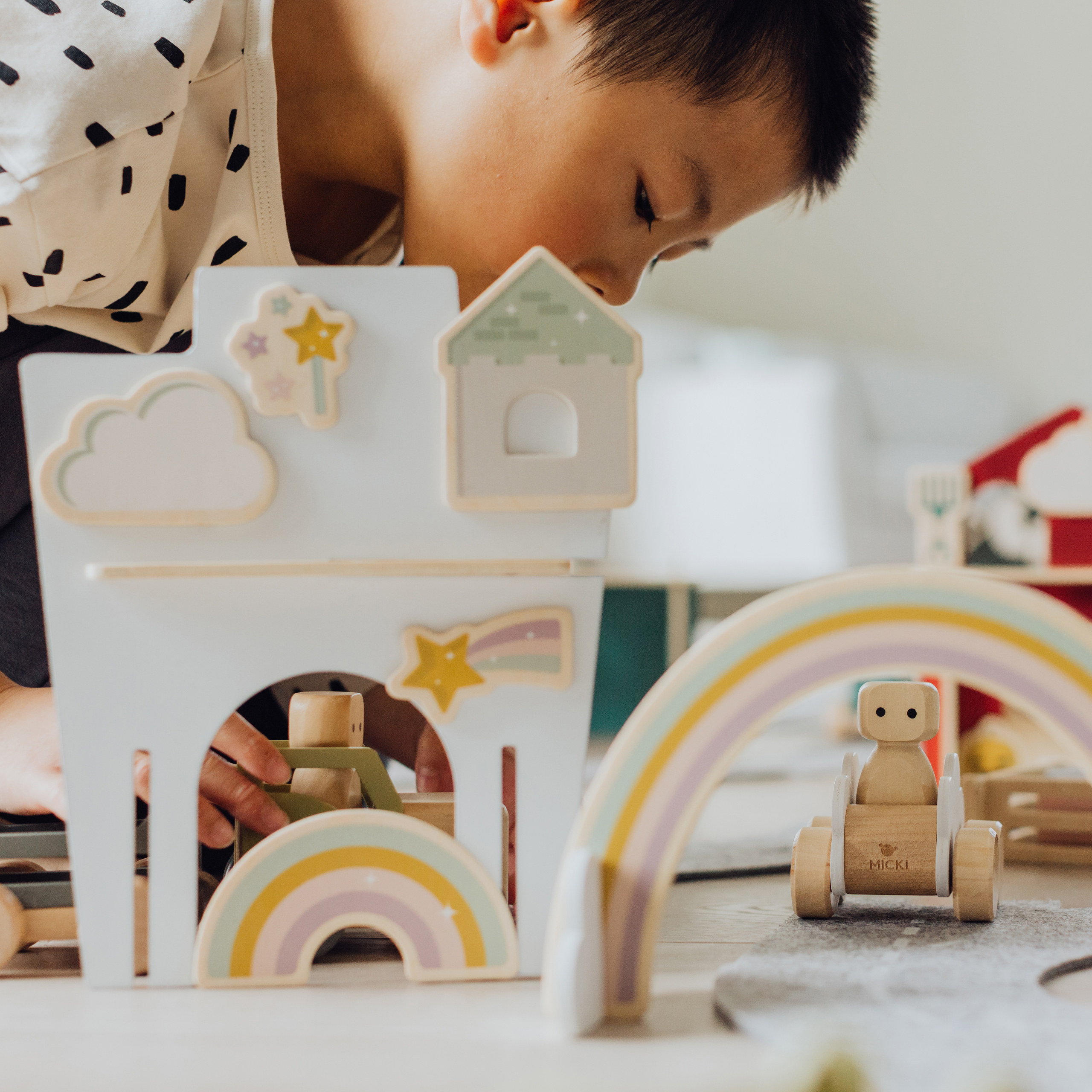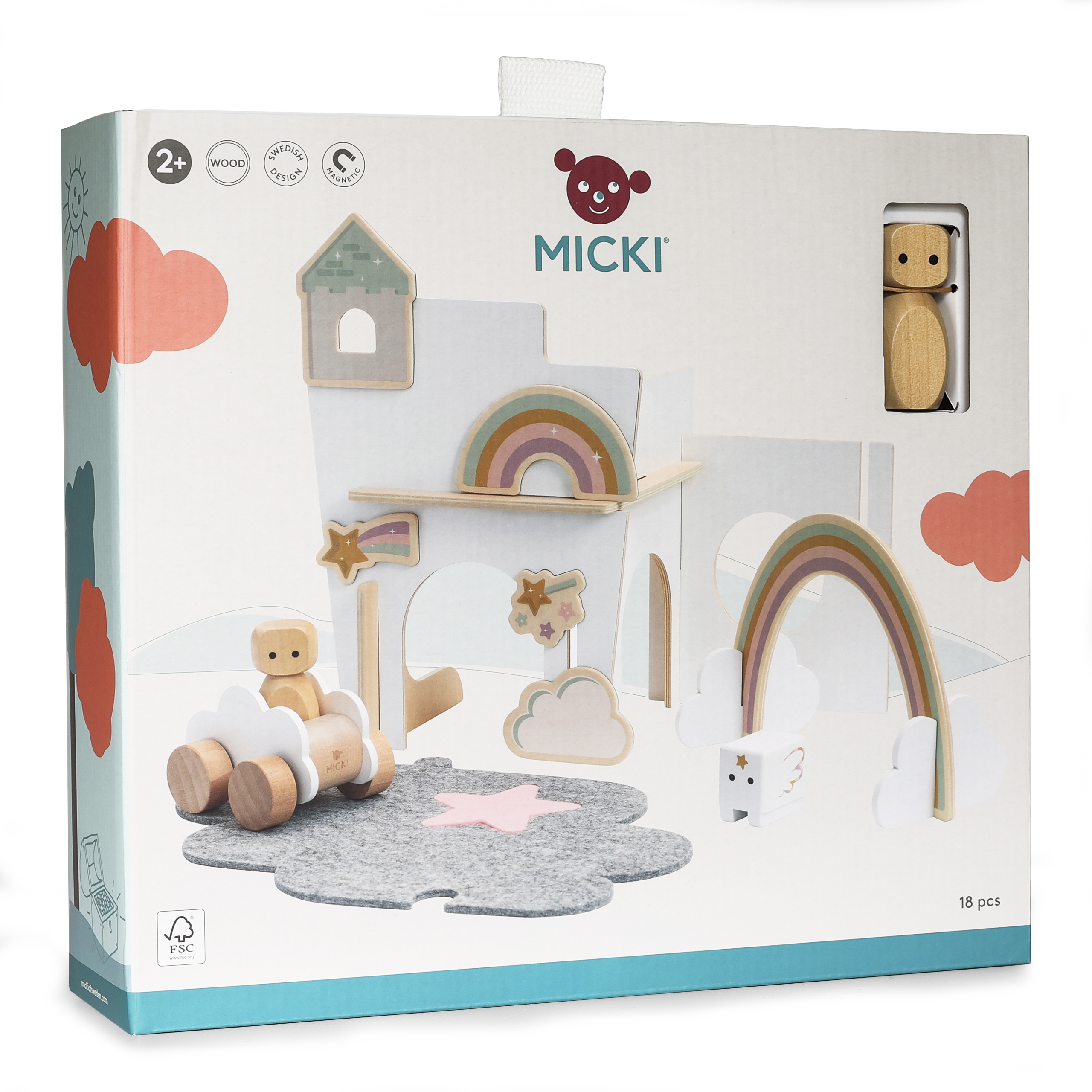 Zaprojektowany w Szwecji drewniany zestaw marki Micki to wyjątkowa zabawka w stylu skandynawskim, która zachwyci Twoje dziecko od pierwszego wejrzenia. Artystyczny design zaprasza do odgrywania ról, opowiadania historii, gwarantuje udaną zabawę i wspiera prawidłowy rozwój Twojej pociechy.
