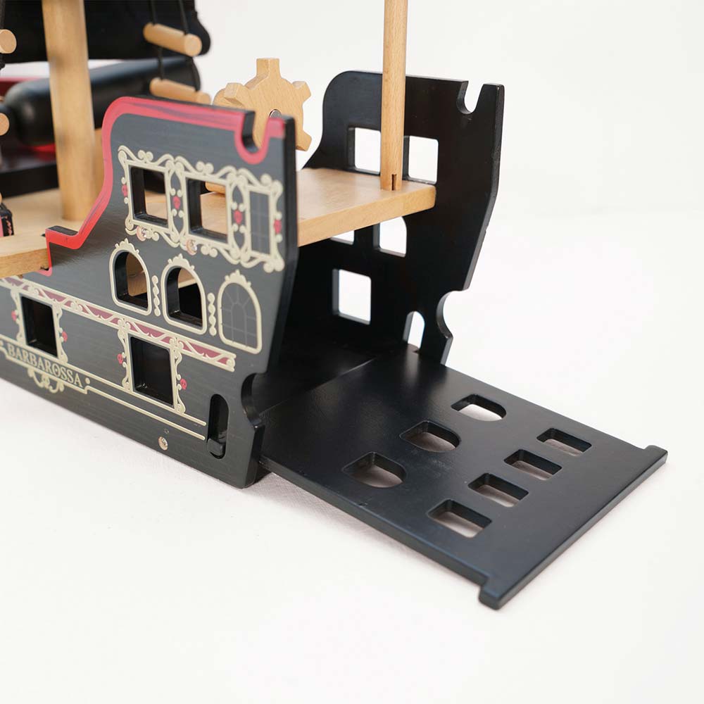 Pełen ekscytujących i interaktywnych funkcji jak np. bocianie gniazdo, trap, olinowanie, armata strzelająca kulami, kotwica oraz tylna otwierana klapa wejściowa, zapewnia długie i niezapomniane przygody. Zabawka rozwija wyobraźnię, zręczność, uczy logiki oraz myślenia skutkowo-przyczynowego. Żagle i chorągiew świecą w ciemności.