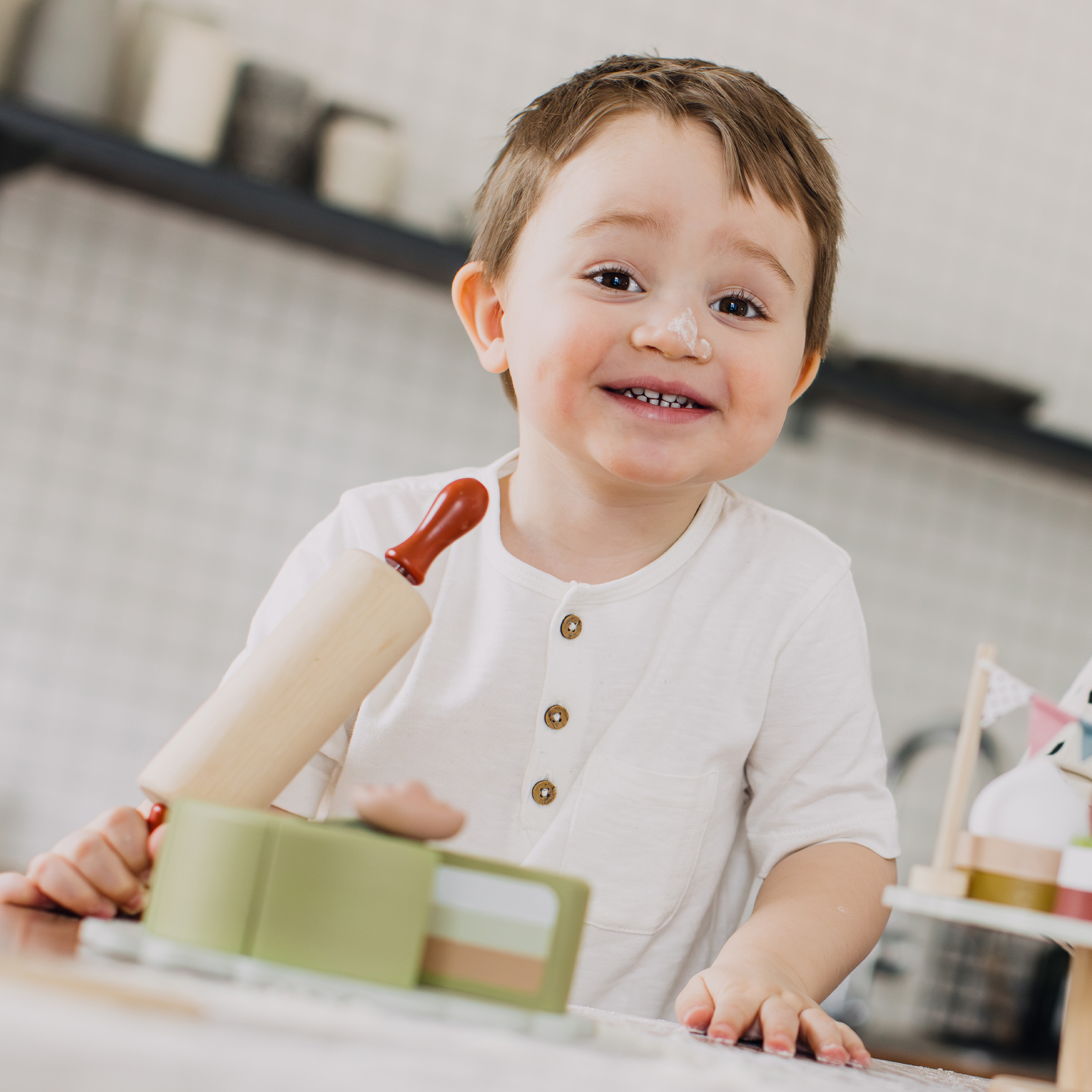 Drewniany zestaw szwedzkiej marki Micki - Tort Księżniczki z akcesoriami i paterą to obowiązkowy element każdego przyjęcia! Ten zestaw to nie tylko zabawka, ale także edukacyjne narzędzie, które pozwala dzieciom rozwijać umiejętności społeczne, kreatywność, wyobraźnię, koordynację ruchową oraz zdolności manualne w bardzo atrakcyjny sposób. Ten zestaw to idealny dodatek do drewnianej kuchenki sprzedawanej osobno. Pozwól swojemu dziecku odgrywać rolę małego cukiernika i cieszyć się ze swoich niezliczonych i kreatywnych kulinarnych przygód!