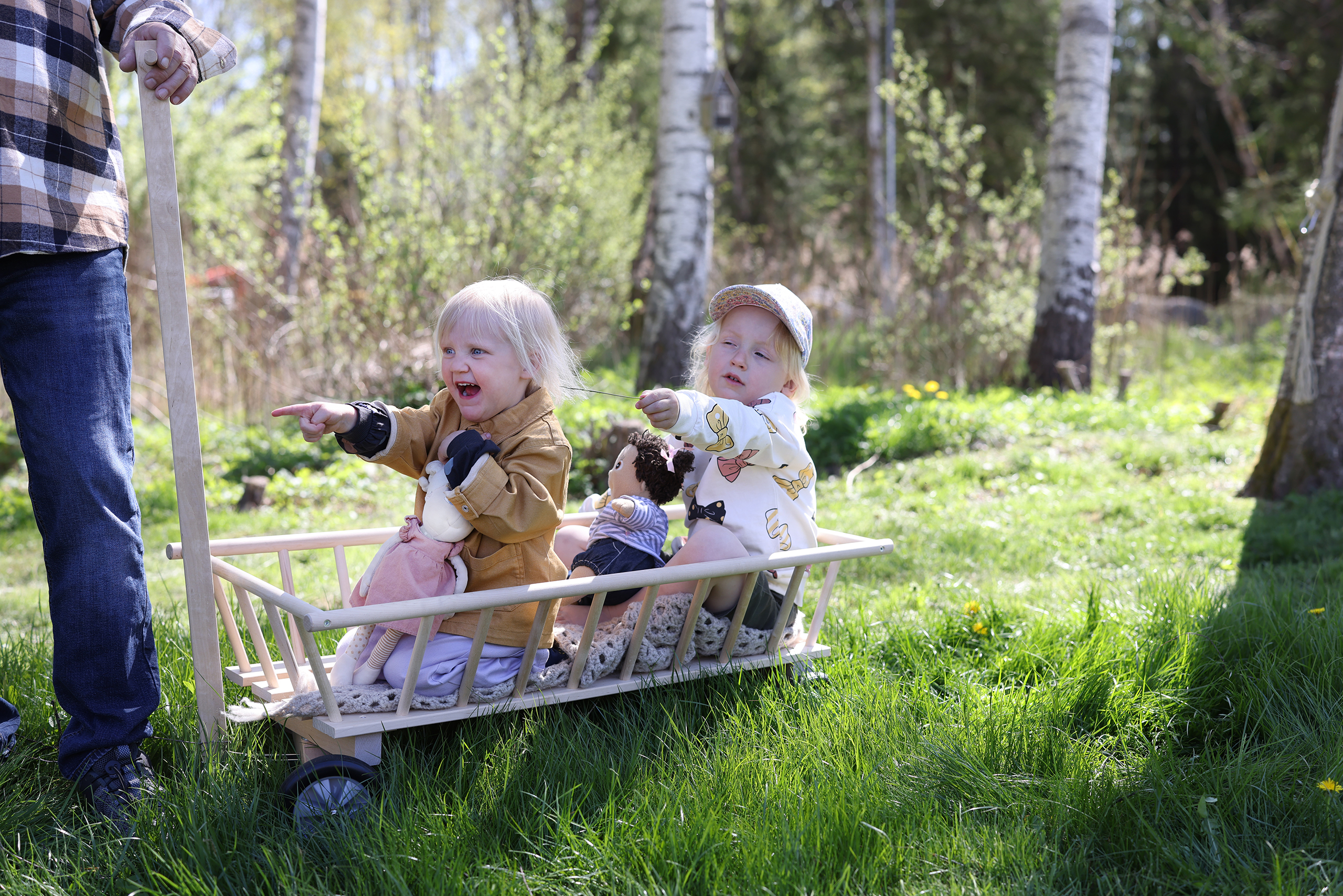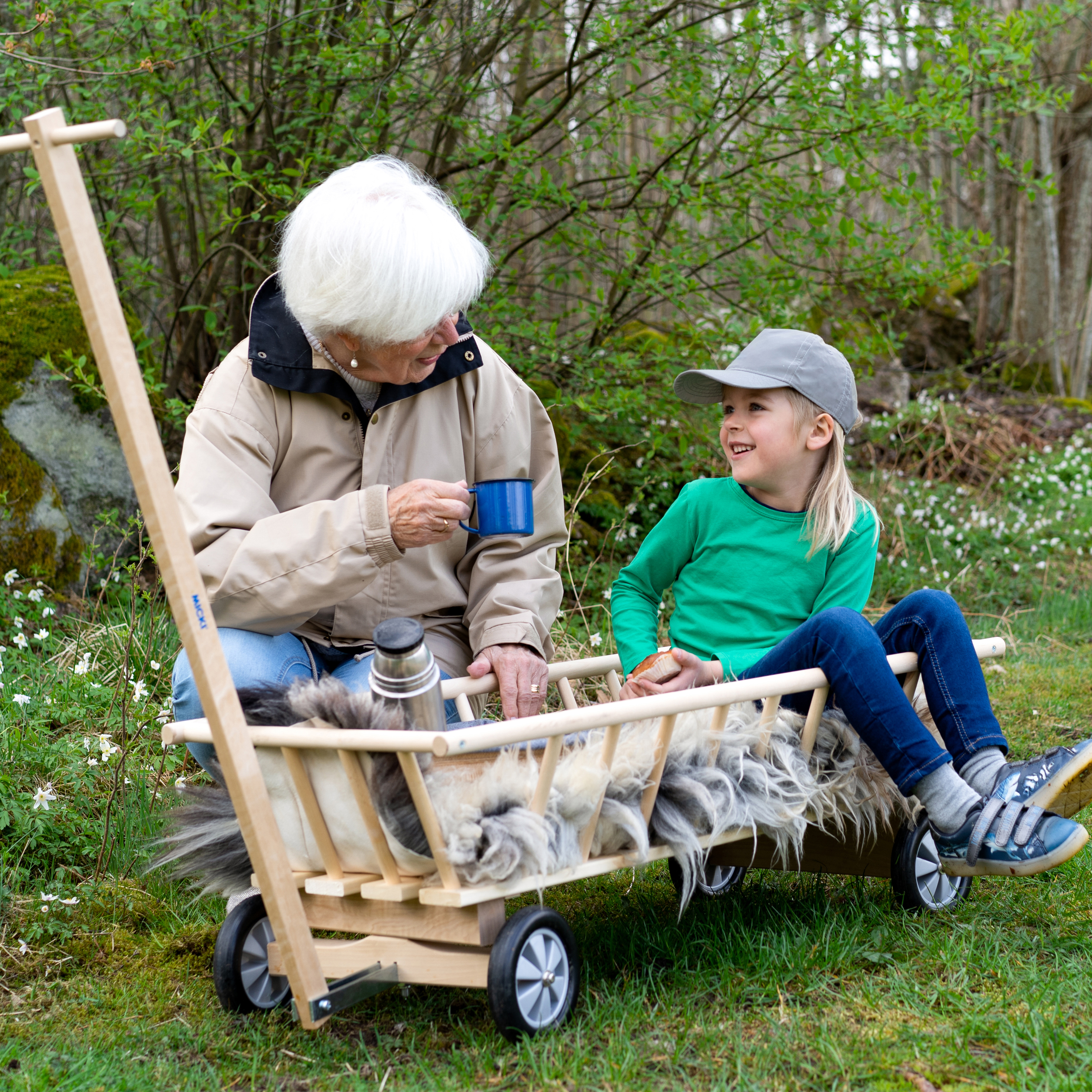 Praktyczny drewniany wózek do ciągnięcia to jedna z najpopularniejszych zabawek szwedzkiej marki Micki! Ten klasyczny środek transportu ma dopuszczalną ładowność do 50 kg, dzięki czemu nawet dwoje dzieci może nim wyruszyć w niezwykłą podróż. Zabierz swoje pociechy na pełen przygód wypad do lasu, albo zapakuj do niego lalki i misie na przejażdżkę po parku. Wózek to doskonały towarzysz aktywnej zabawy na świeżym powietrzu. Co najważniejsze - wózek ma koła, więc sprawdzi się o każdej porze roku - nawet zimą gdy brakuje śniegu i sanki stoją w kącie!