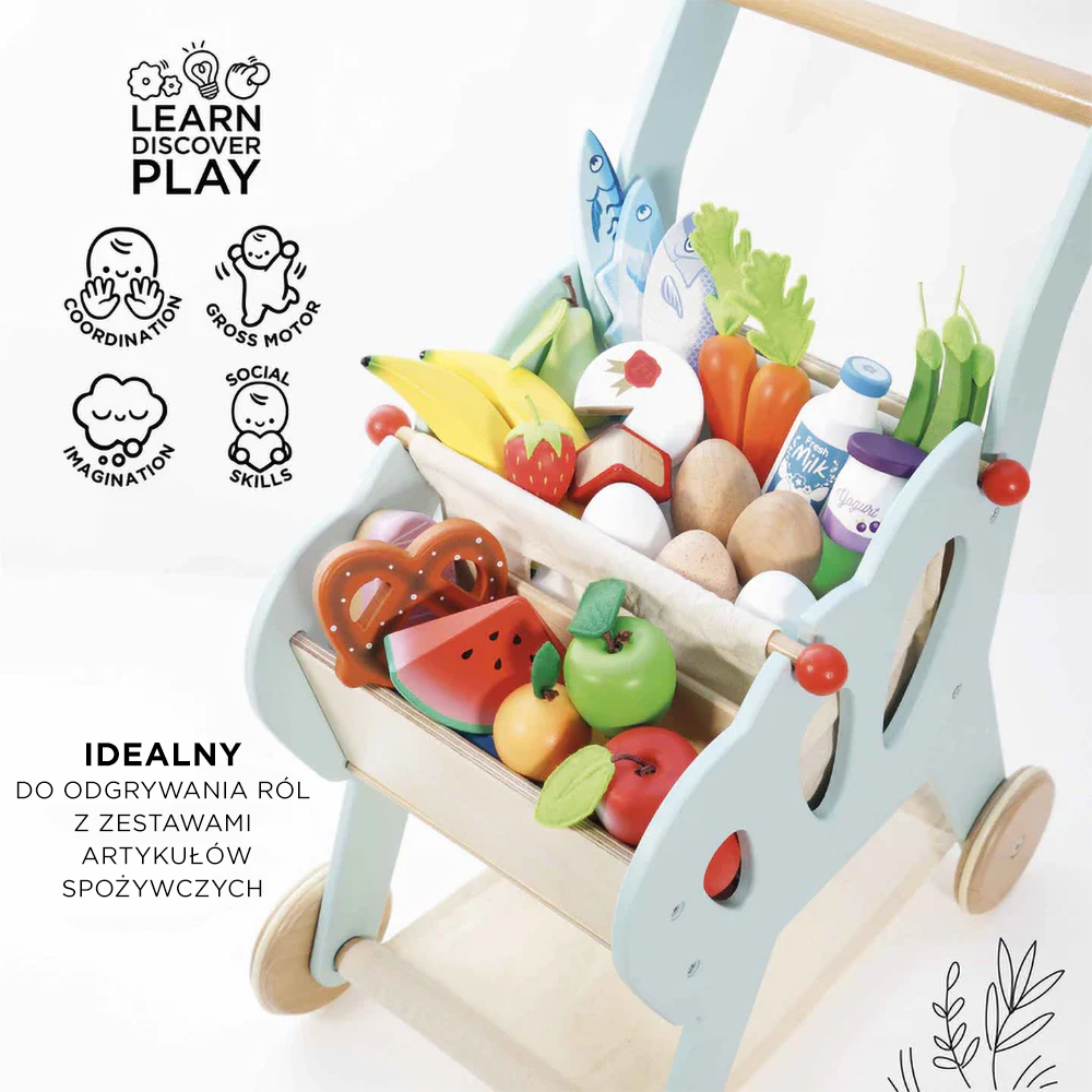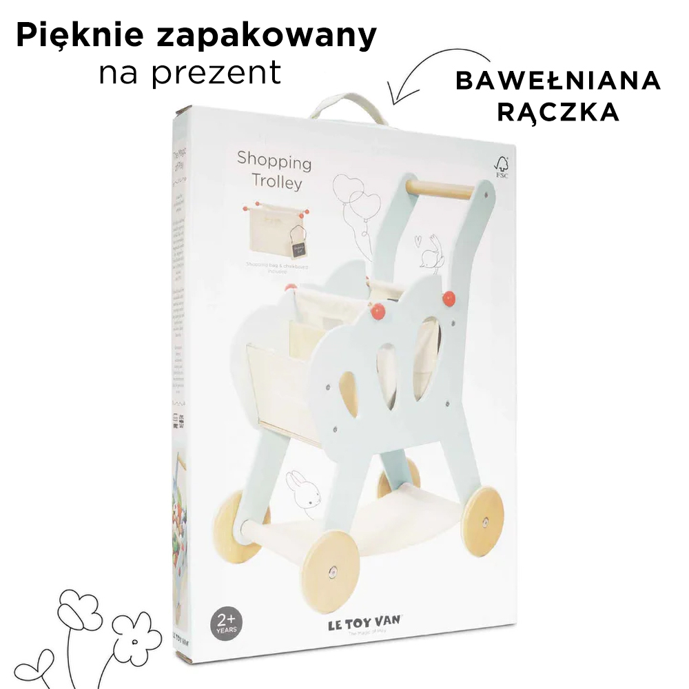 Drewniany wózek na zakupy, zabawka dla dzieci, zabawa w sklep, Le Toy Van