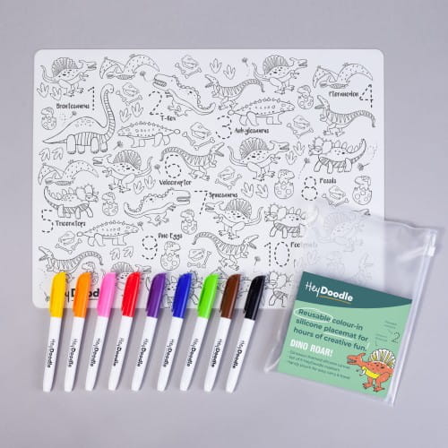 Mata Silikonowa A3 do Wielokrotnego Kolorowania Hey Doodle - Dinozaury to kolorowanie bez końca.