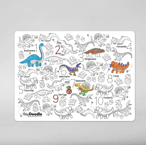 Łatwozmywalna Mata Silikonowa A3 do Wielokrotnego Kolorowania Hey Doodle - Dinozaury