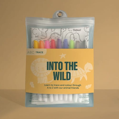 Zwierzęta do kolorowania (między innymi słoń, ośmiornica, żyrafa, wieloryb, iguana itd.) i literki do pisania po śladzie. Pokolorowaną matę można wytrzeć wilgotną szmatką lub umyć pod bieżącą wodą.