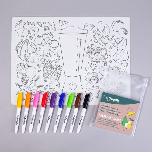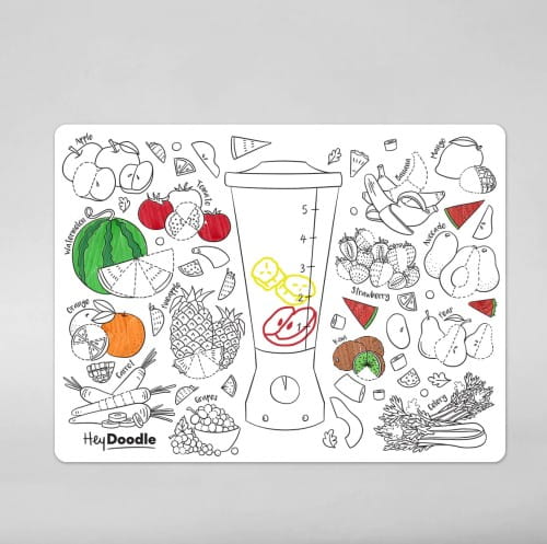 Mata Silikonowa A3 do Wielokrotnego Kolorowania Hey Doodle - Owoce i Warzywa to kolorowanie bez końca.