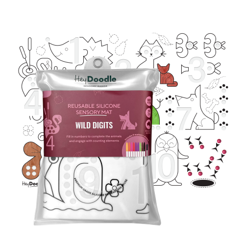 Duża Sensoryczna Mata Silikonowa A3 do Wielokrotnego Kolorowania Hey Doodle - Dzikie Cyferki