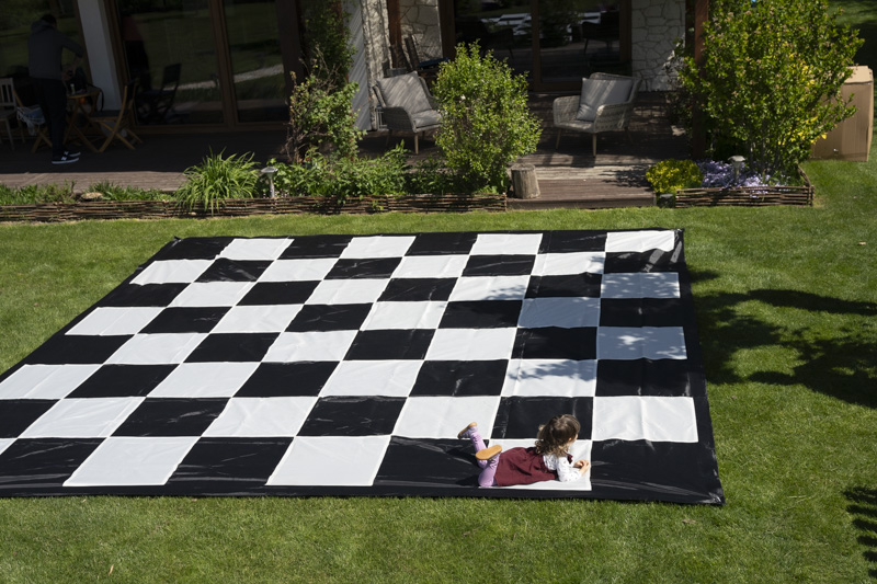 Szachownica może być wykorzystana do żywych szachów. Wciel się w role figurę szachowej i graj z przyjaciółmi w plenerze.