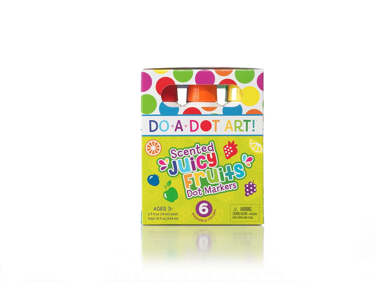 Pierwsze pachnące flamastry dla Twojego dziecka w soczystych, owocowych kolorach od Do-a-dot Art - maluj kropkami, wypełniaj kontury, ożywiaj postaci na papierze.