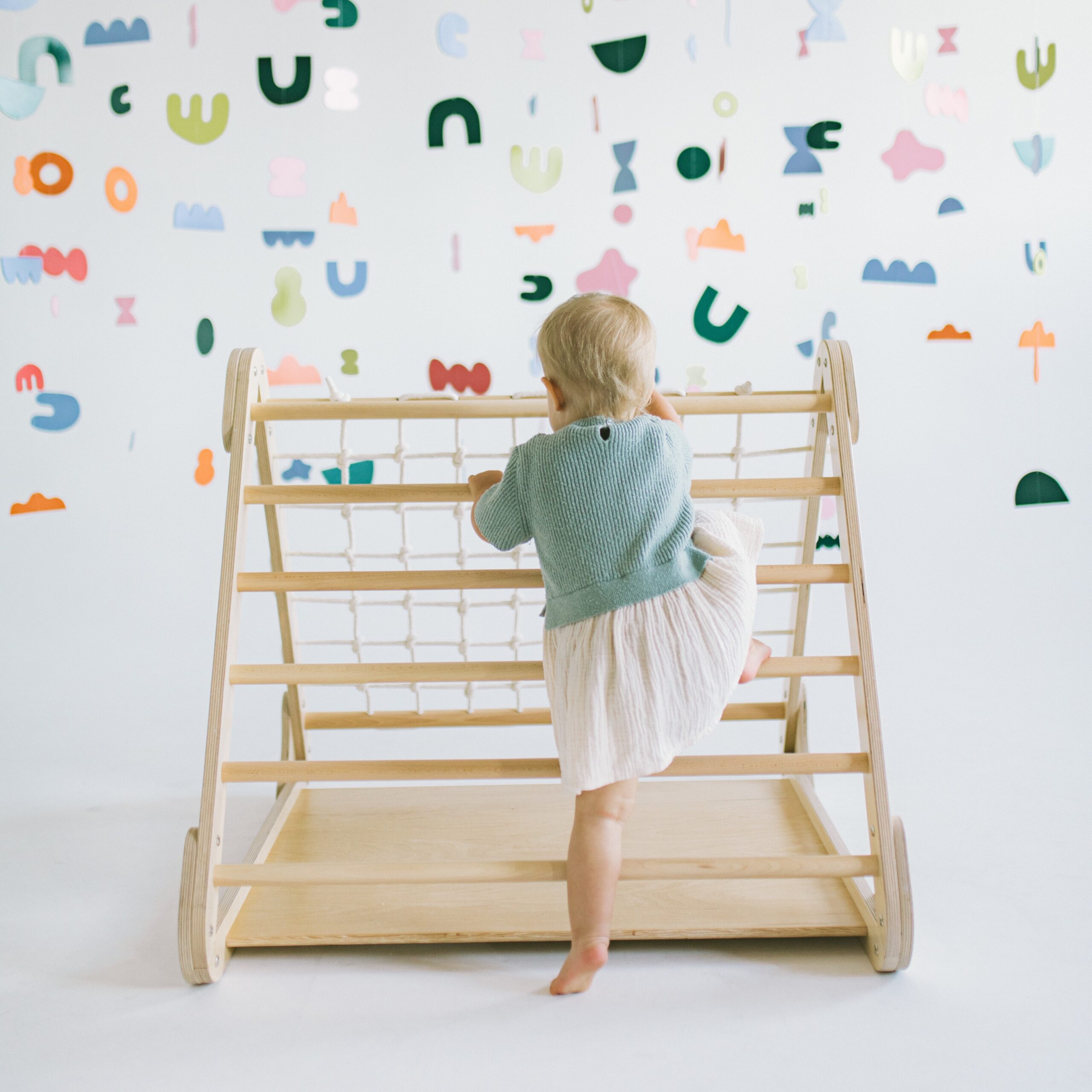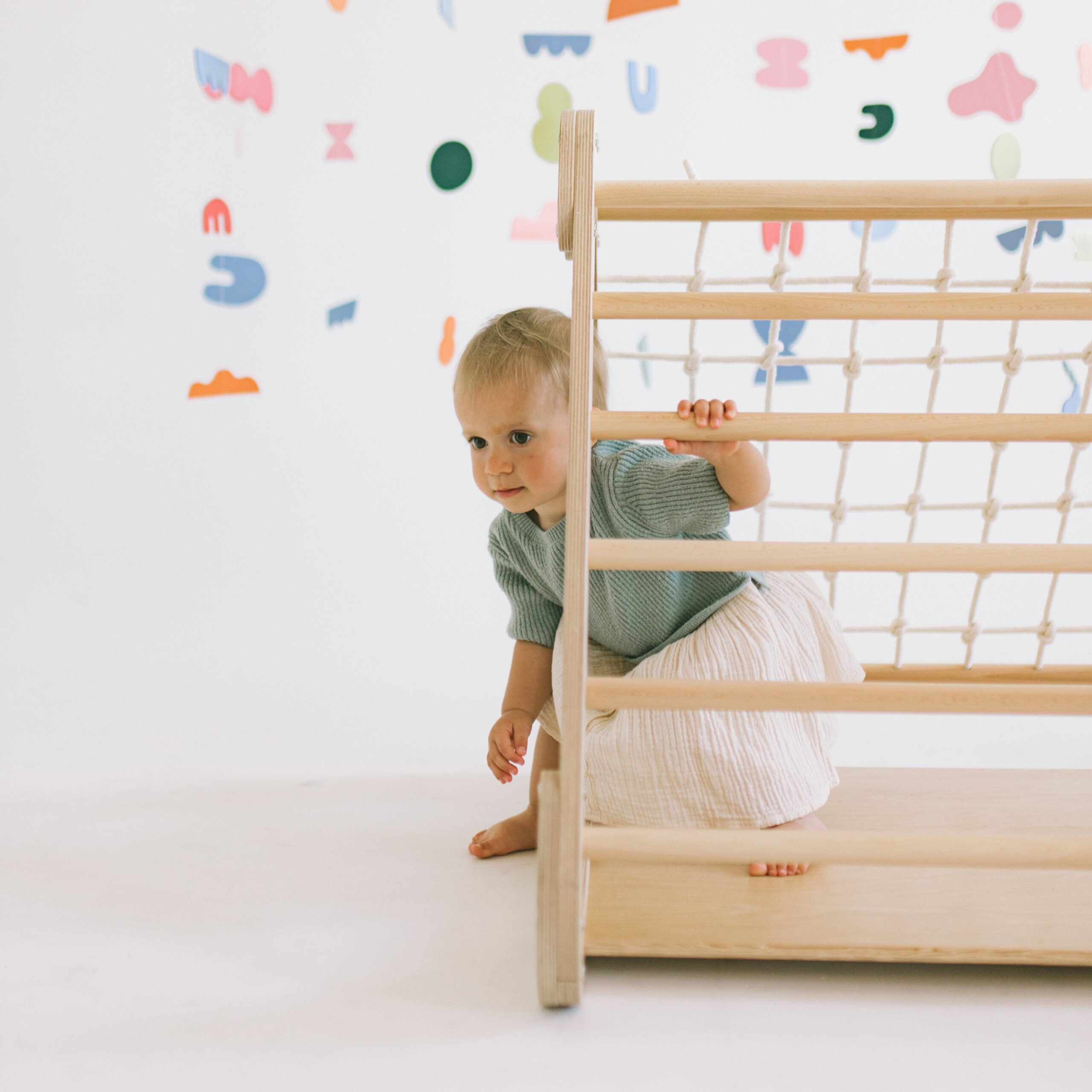 Drabinka Piklera to ponadczasowy element wyposażenia dziecięcego pokoju, który wspiera rozwój motoryczny i kreatywność najmłodszych. Model ze zdjęcia został wzbogacony o ściankę wspinaczkową z kolorowymi chwytami oraz siatkę linową, dzięki czemu zapewnia jeszcze więcej możliwości zabawy i aktywności. Dzięki prostemu i minimalistycznemu designowi – będzie idealnie komponować się w każdym pomieszczeniu. Drabinka to nie tylko zabawka, ale także narzędzie do wspierania rozwoju psychoruchowego – dzieci uczą się samodzielności, pokonywania przeszkód i rozwijają pewność siebie w bezpiecznych warunkach.