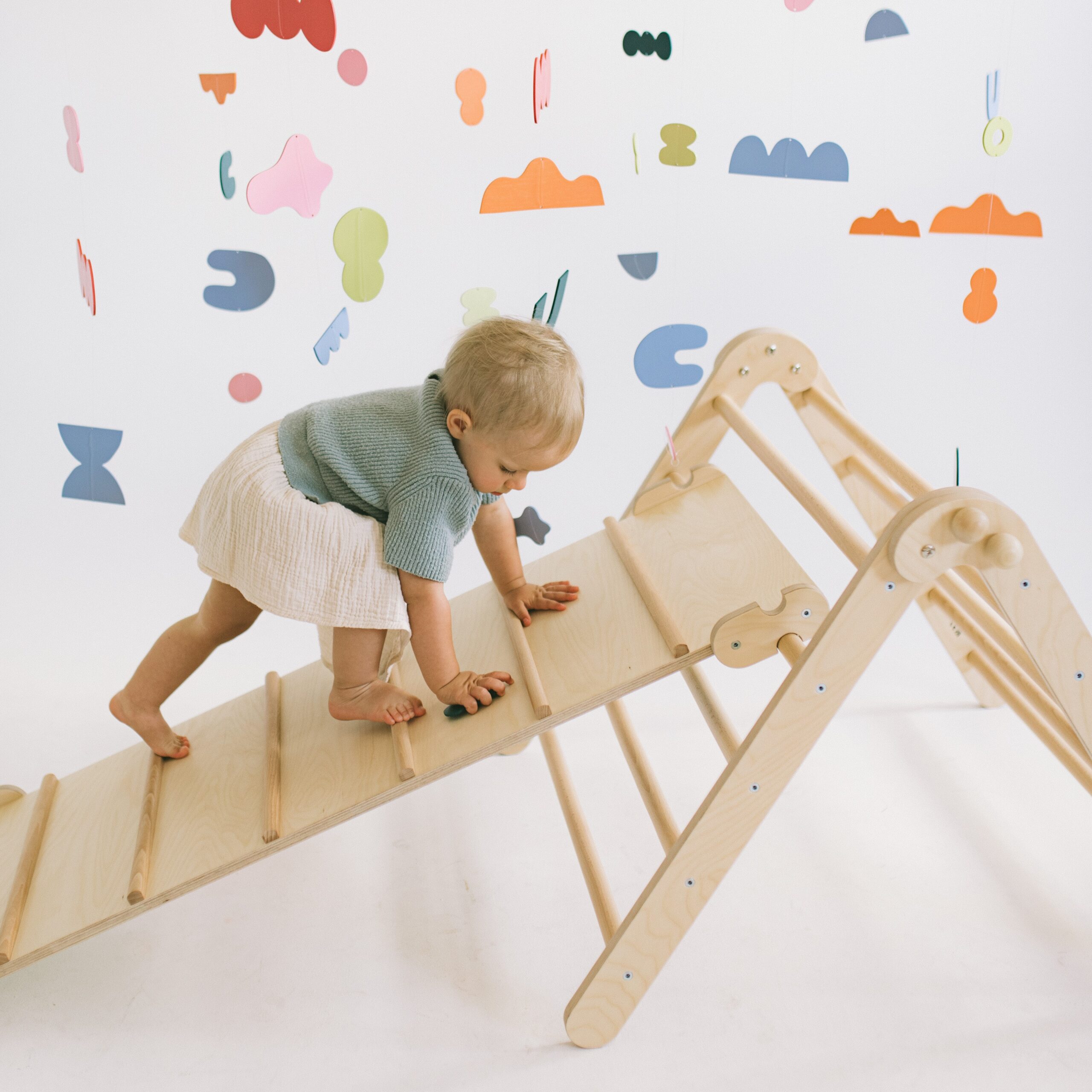 Drabinka to kultowy element wspierający rozwój ruchowy dzieci już od najmłodszych lat. Prosta, stabilna i naturalna konstrukcja zachęca do wspinania, przechodzenia, ćwiczenia równowagi i odkrywania własnych możliwości.