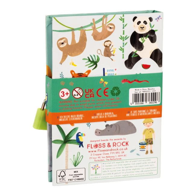 Wyjątkowy pamiętnik z motywem kolorowej dżungli, który nie tylko pozwala zanotować wyjątkowe chwile i cenne wspomnienia, ale także przenosi w świat pełen przygód i fantazji. Z okładki unosi się aromat bananowego zapachu, który dodaje mu wyjątkowego uroku. Wystarczy podrapać okładkę, aby odkryć ten zapach. Pamiętnik zamykany jest na małą kłódkę, co zapewnia prywatność i bezpieczeństwo sekretnych myśli i emocji. Posiada również dwie kolorowe tasiemki do zakładania stron oraz zestaw zabawnych naklejek z dzikimi zwierzakami, przyrodą i nie tylko. Idealnie sprawdzi się jako prezent, który zachęca do pisania i wyrażania siebie.
