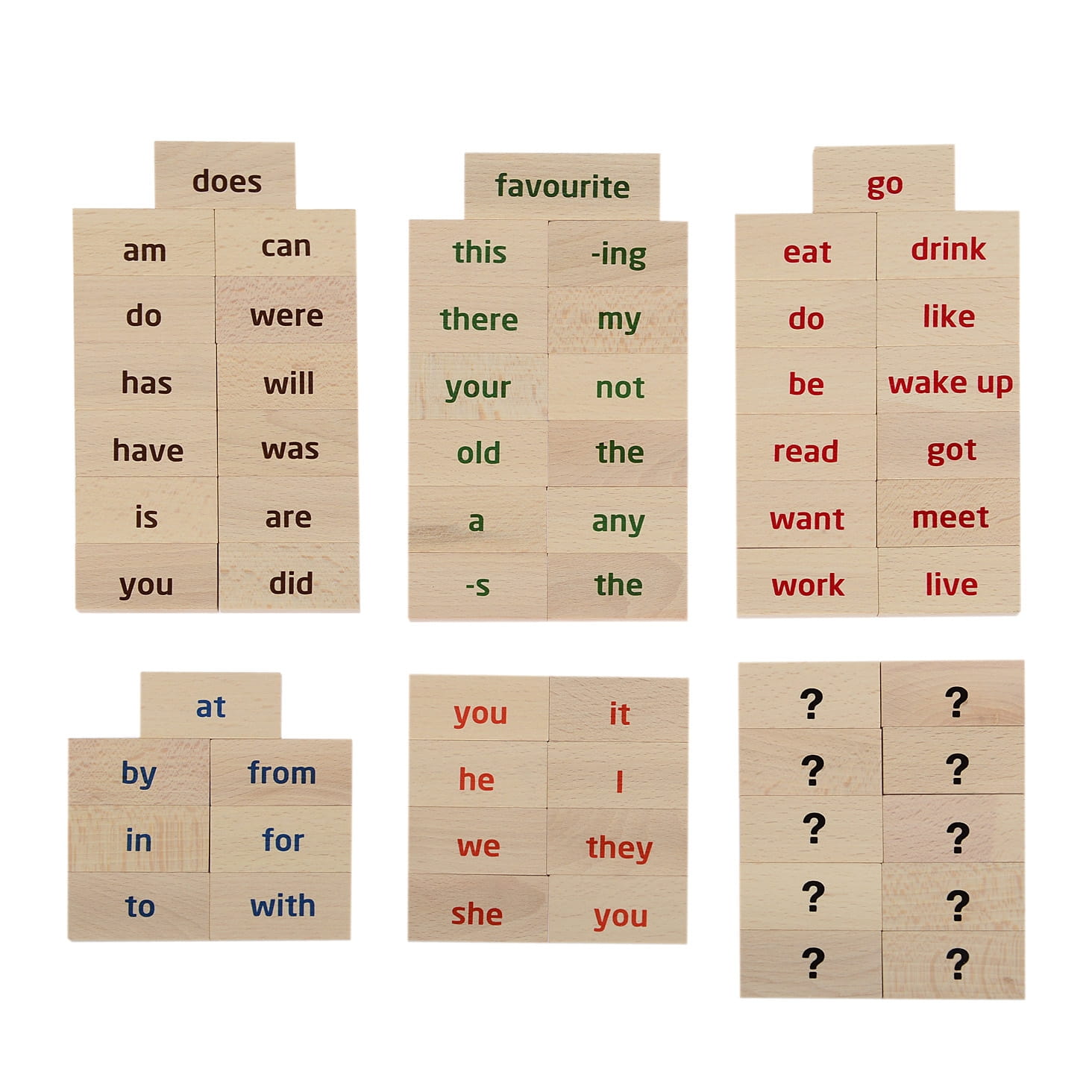 W zestawie znajduje się aż 100 płytek z angielskimi słówkami i wyrażeniami, przy ich pomocy można ułożyć ogromną ilość pytań w czasie teraźniejszym, przeszłym i przyszłym. Bawiąc się drewnianymi płytkami dziecko oswaja się i zapamiętuje prawidłową pisownię wyrazów, a skupia się przede wszystkim na odpowiednim szyku zdania.