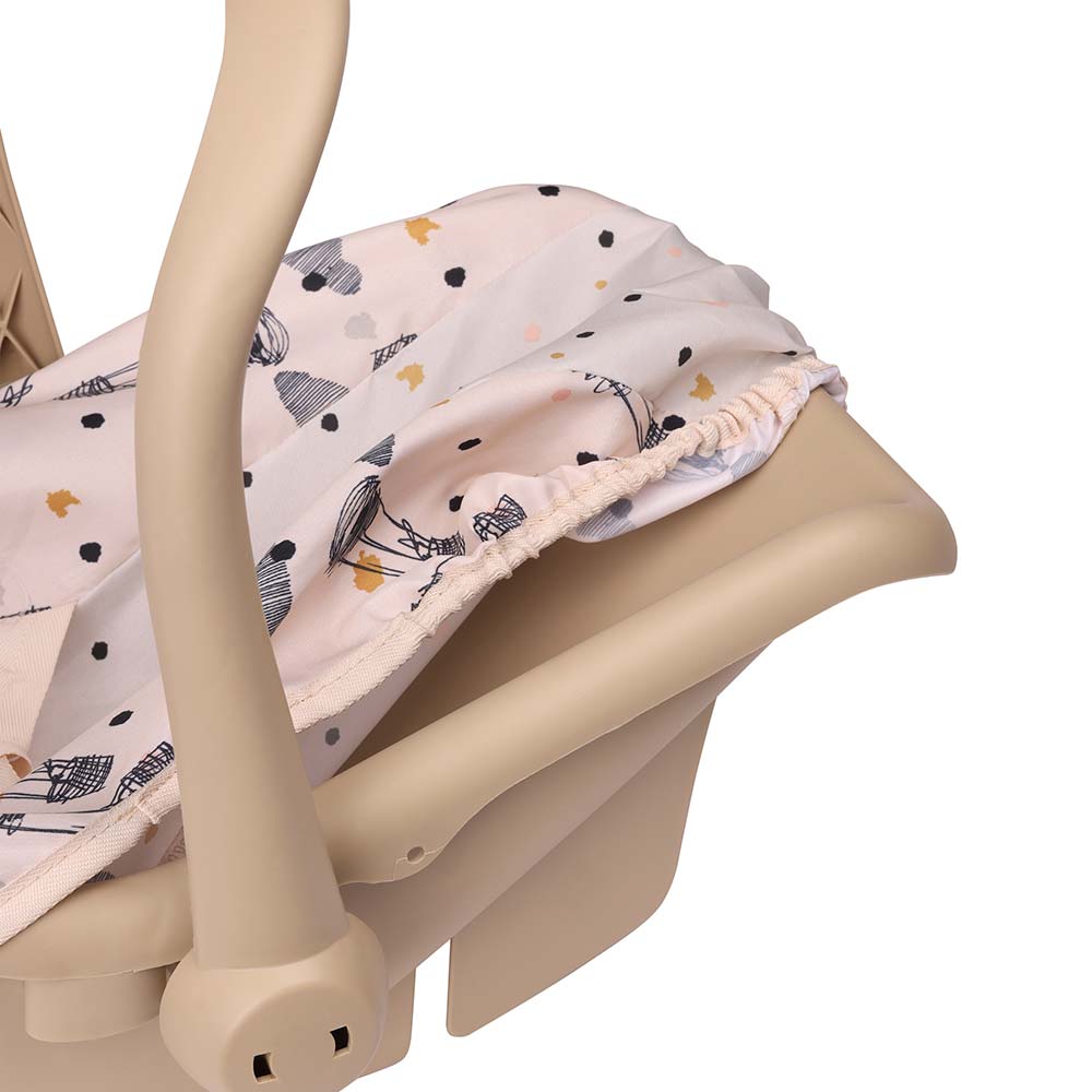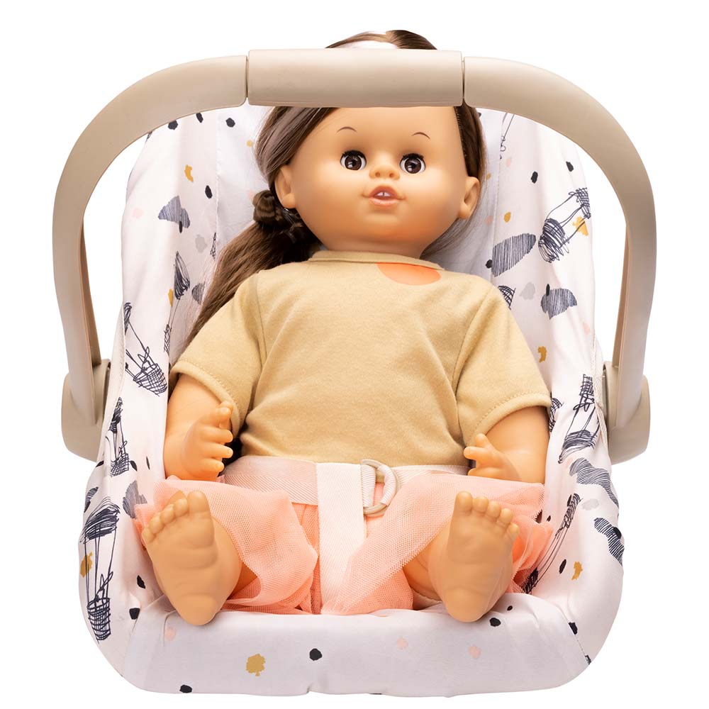 Aby bezpiecznie podróżować samochodem musisz mieć fotelik. Od teraz ma go również Twoja lalka, dzięki czemu możecie razem podróżować i odkrywać świat. Fotelik dla lalki zapewnia jej komfort i bezpieczeństwo, więc możecie cieszyć się zabawą podczas jazdy do woli! Złóż do tyłu regulowany uchwyt fotelika, a Twoja lalka zyska wygodny leżaczek do siedzenia, odpoczynku lub zabawy gdy dojedziecie na miejsce lub zatrzymacie się na postój.